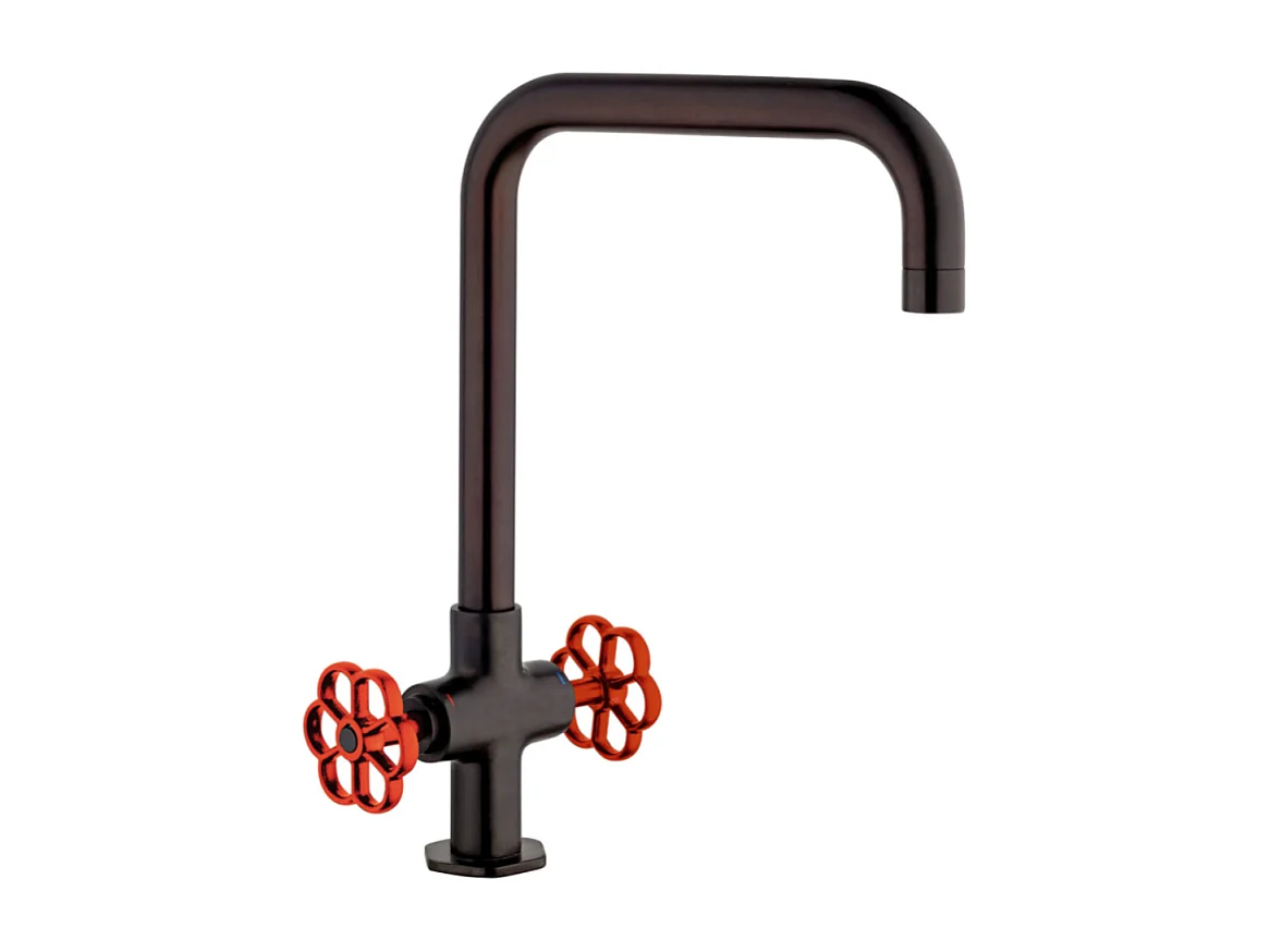 PAINI Mélangeur cuisine Induss Bec haut noir mat - manette rouge douchette extractible