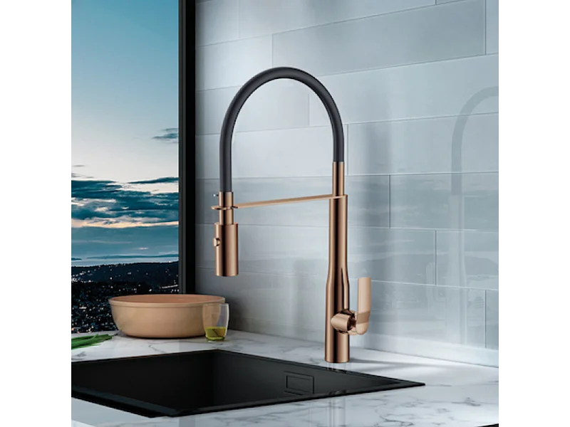 PAINI Mitigeur cuisine Addict Bec haut gold rose douchette extractible