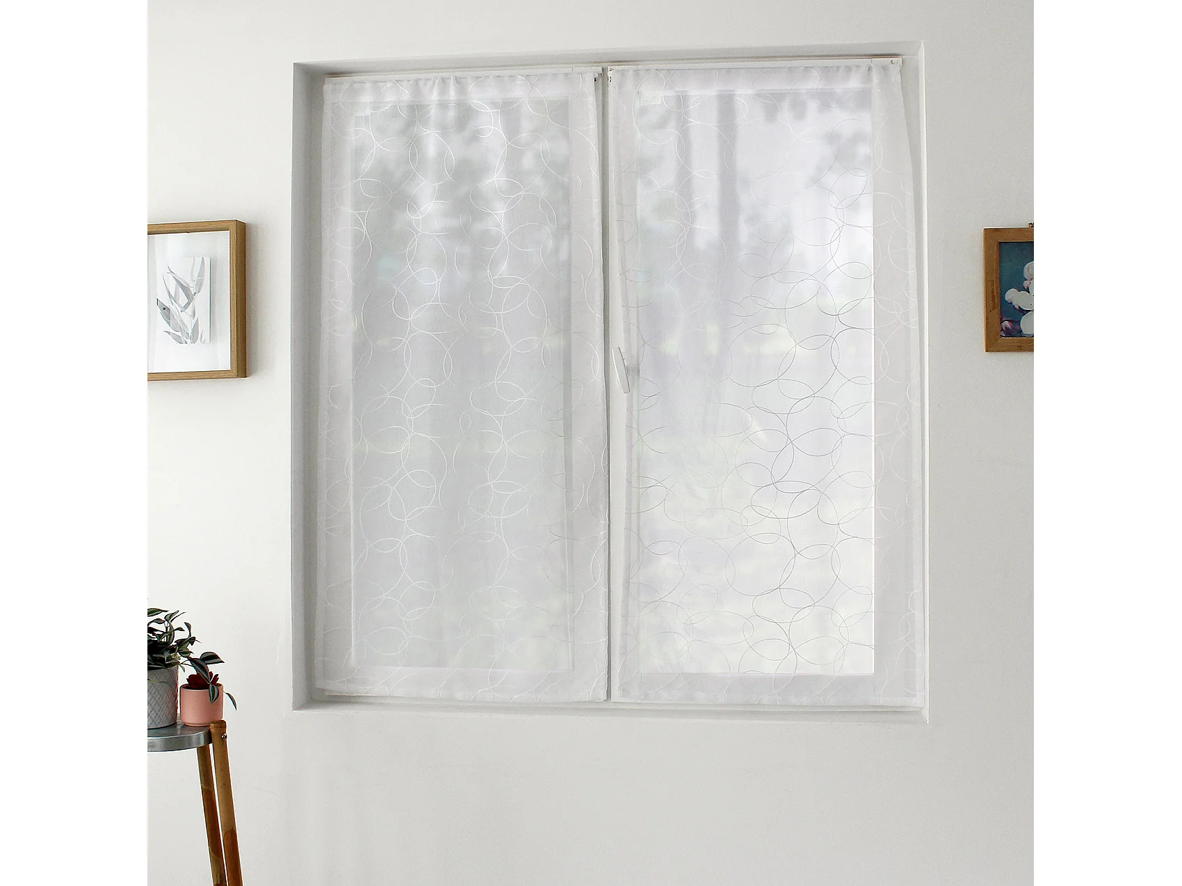 Paire de Voilages "Smarties" 60x90cm Blanc & Argent