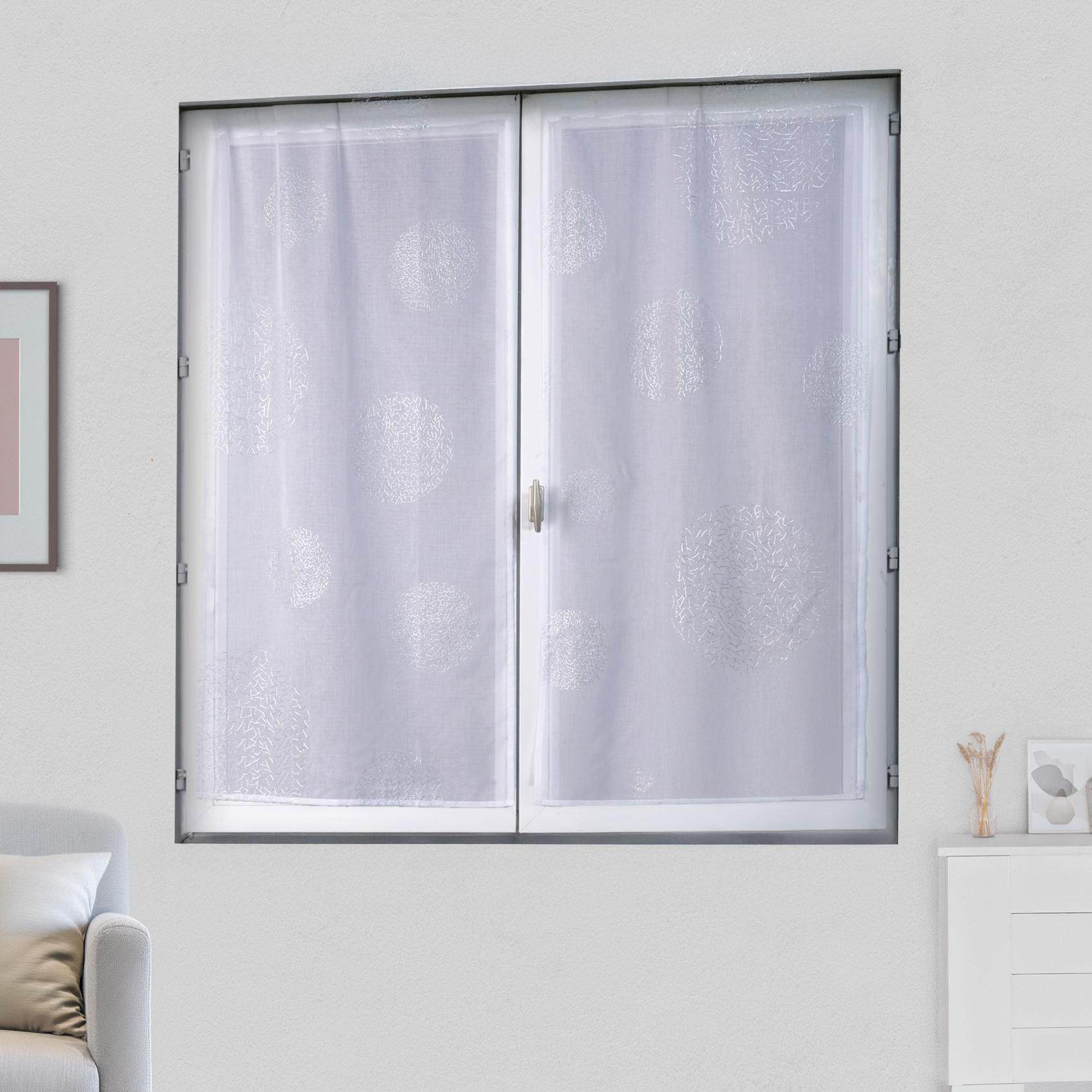 Paire de petits voilages en étamine motif argent
