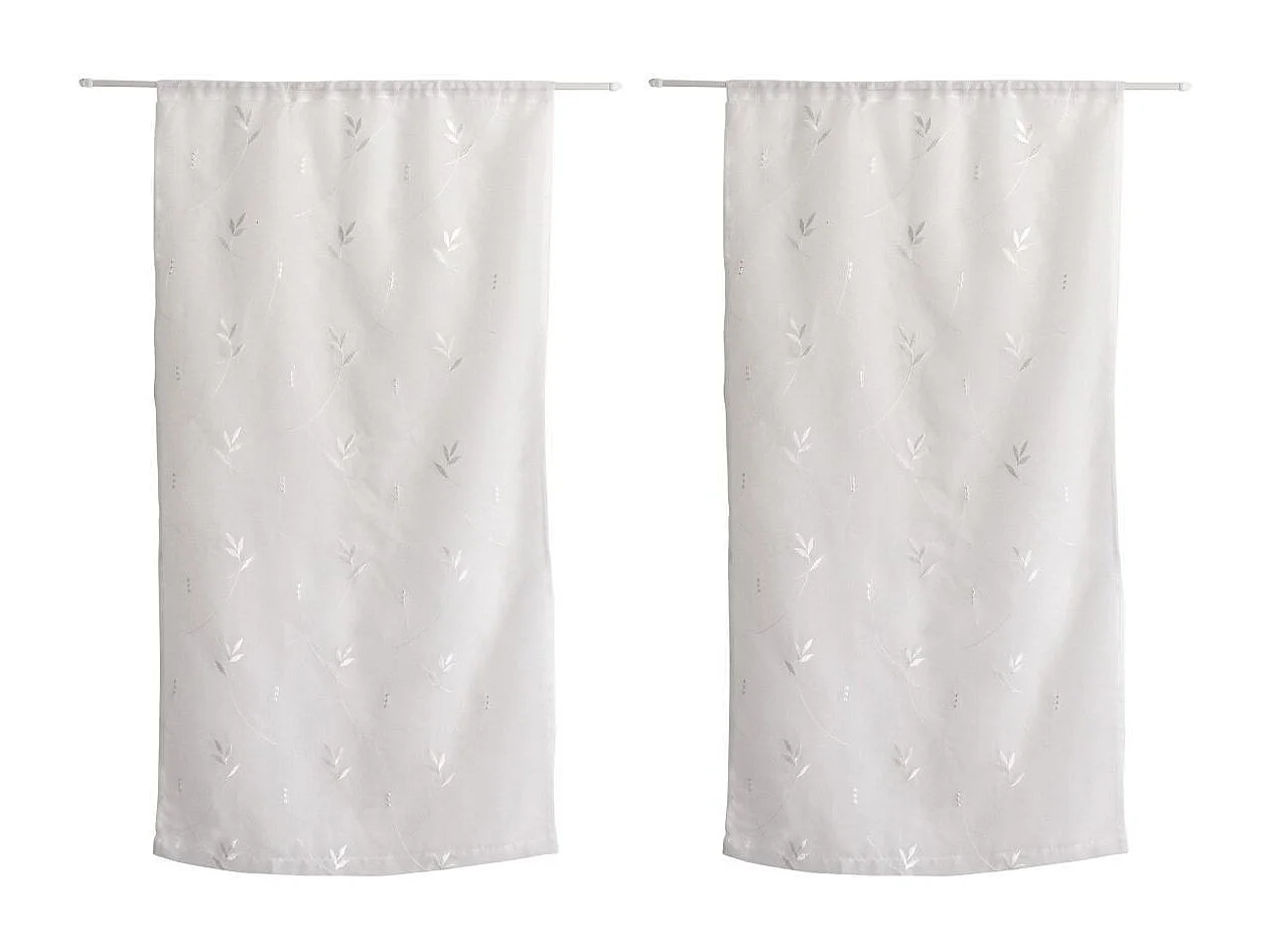 Paire de Voilages Brodés "Feuillage" 60x120cm Blanc