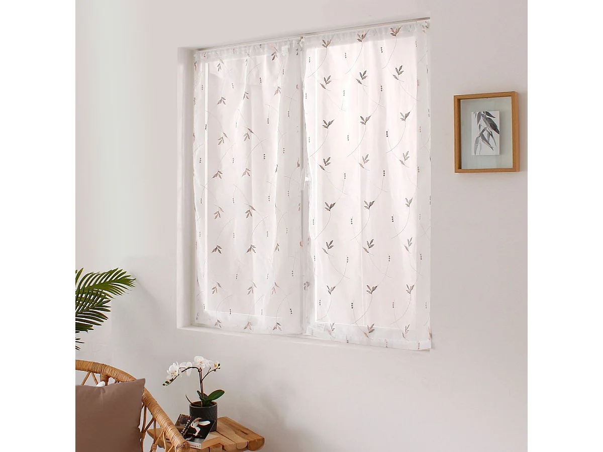 Paire de Voilages Brodés "Feuillage" 60x90cm Vison