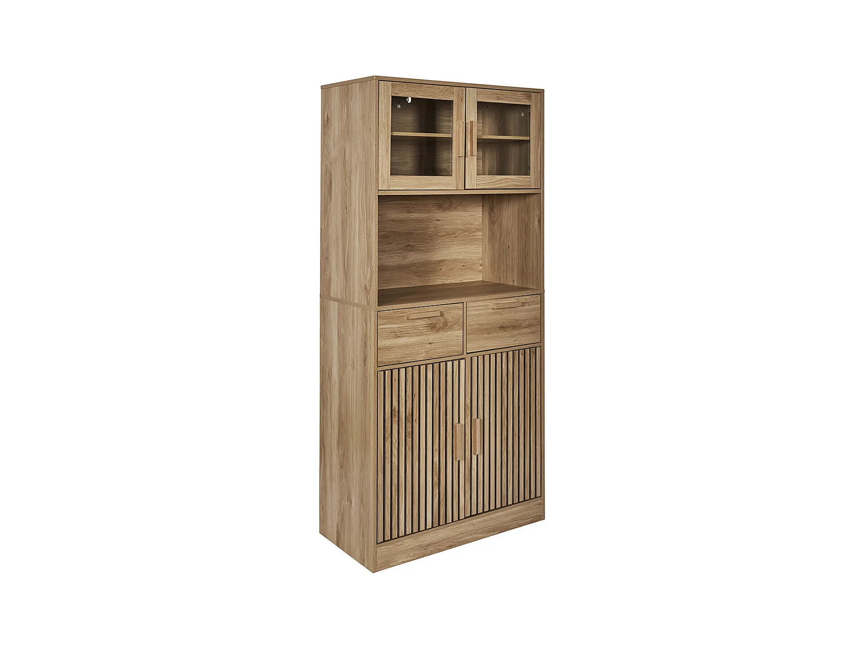 PAJAN - Buffet Vaisselier Multi-Rangement Effet Bois avec Tasseaux