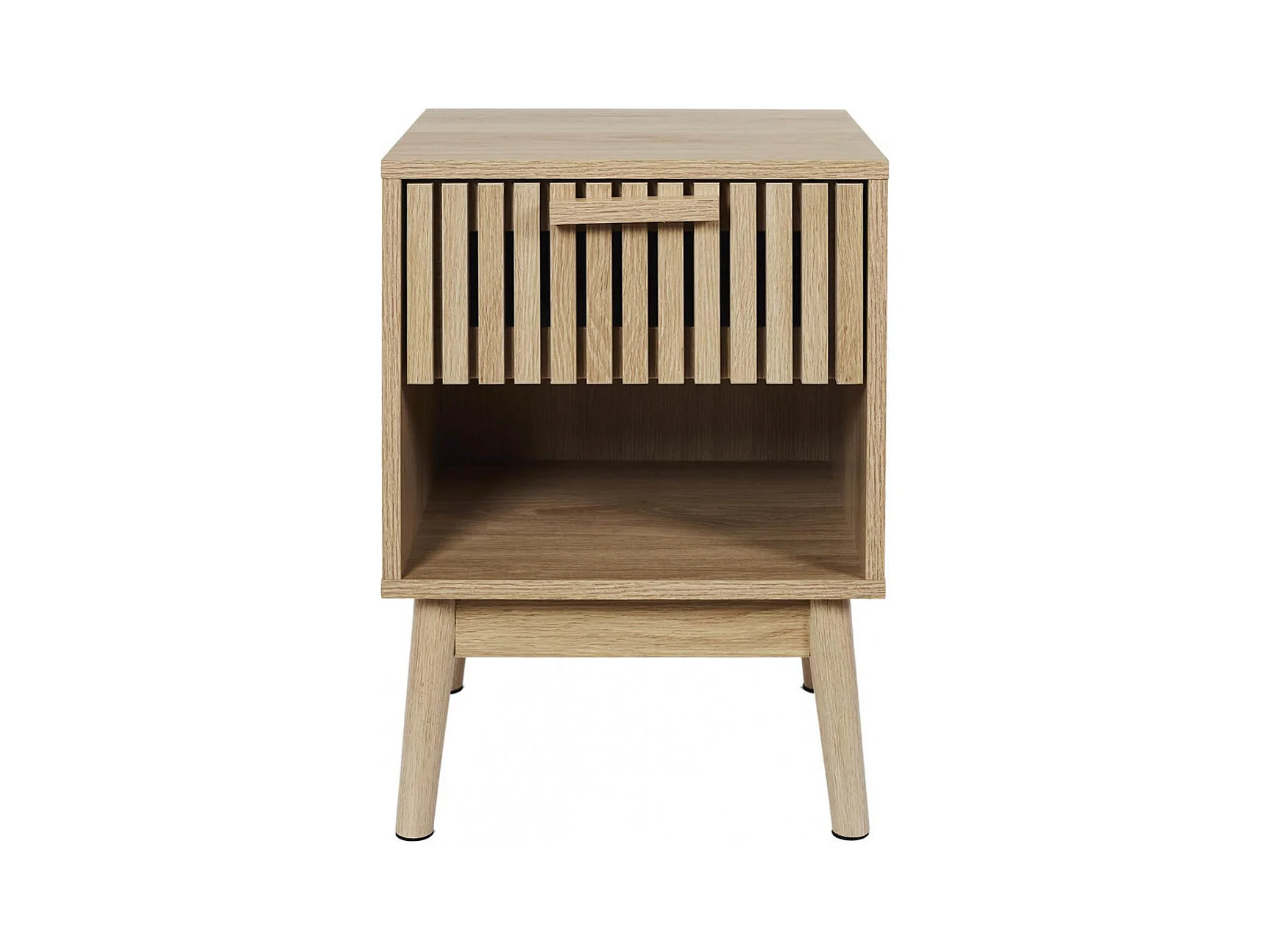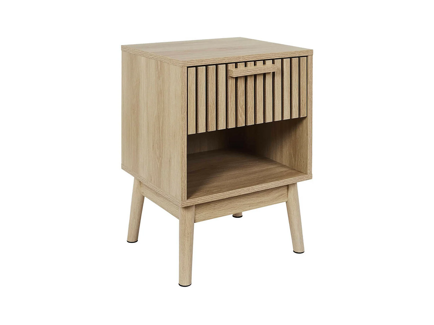 LOWAN - Chevet 1 Tiroir Effet Tasseaux Teinté Chêne Foncé