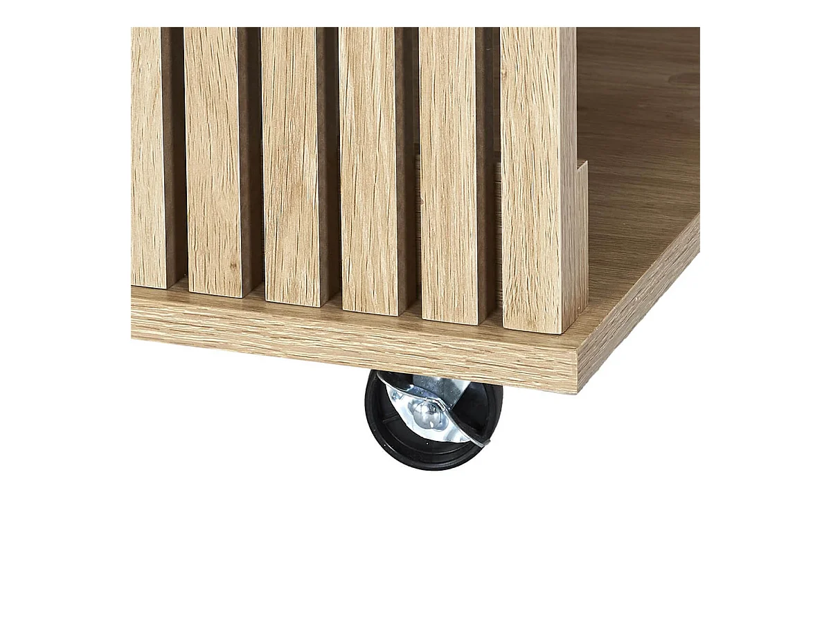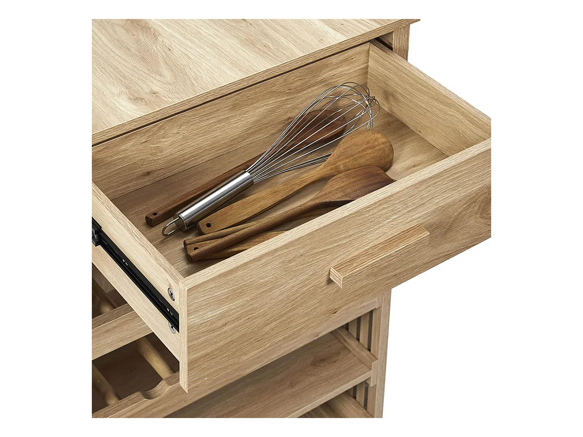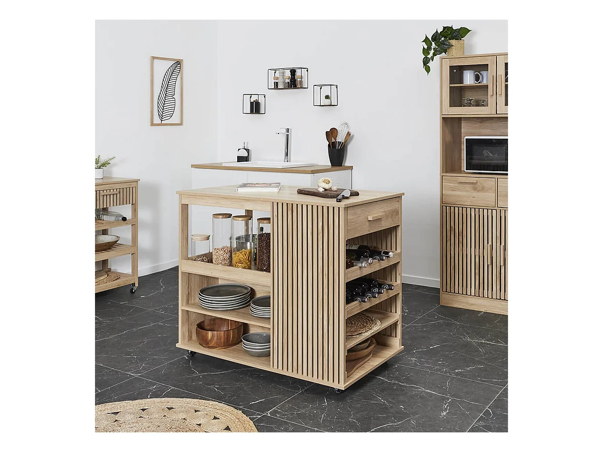 PAJAN - Ilot de Cuisine Multi-Rangement Effet Bois avec Tasseaux