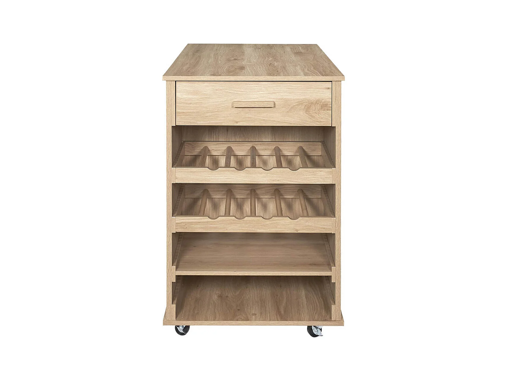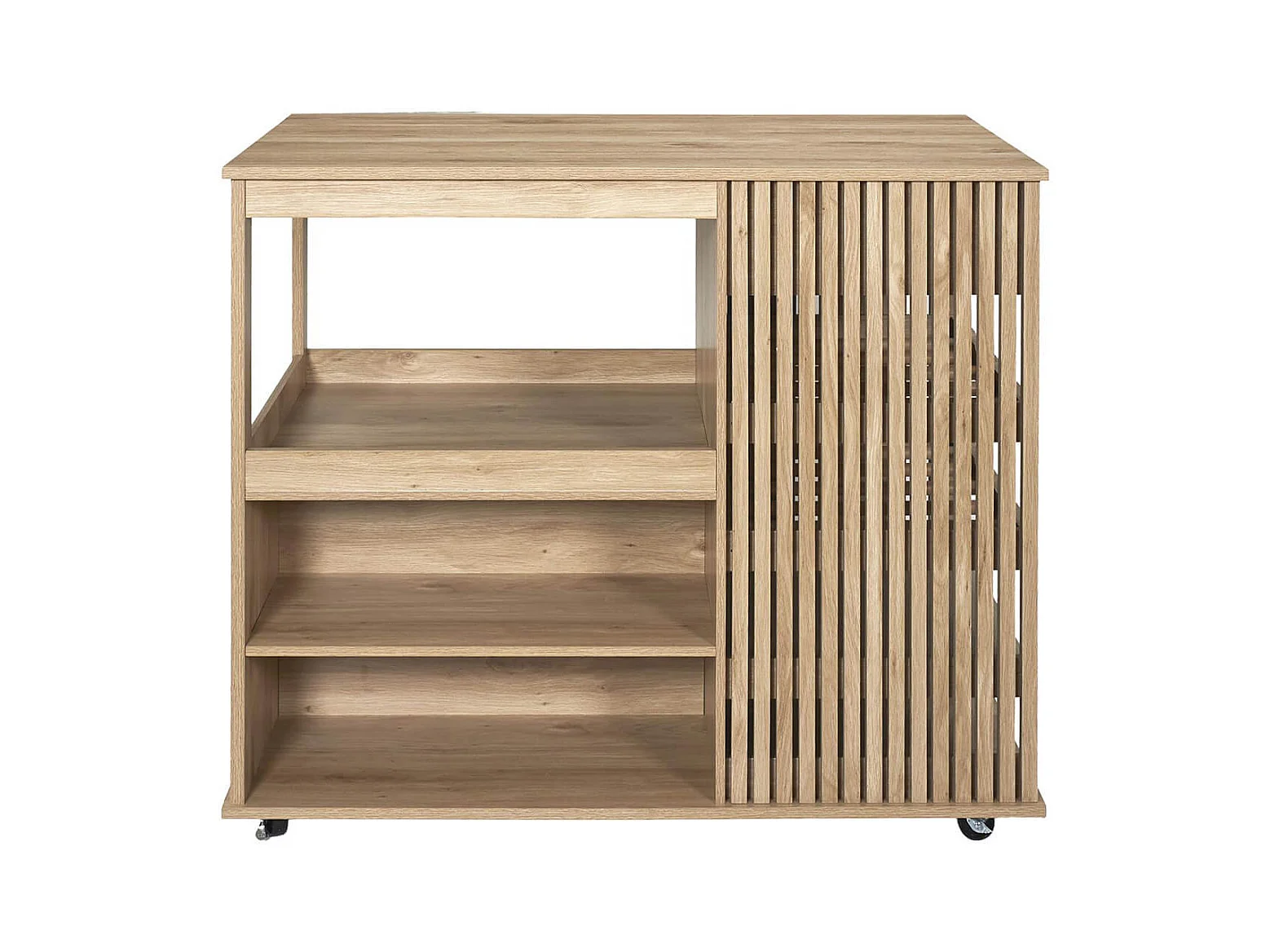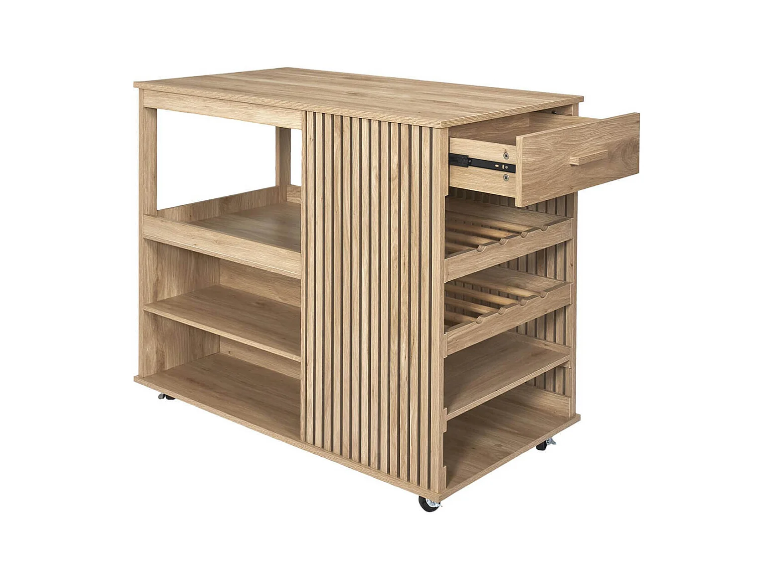 PAJAN - Ilot de Cuisine Multi-Rangement Effet Bois avec Tasseaux