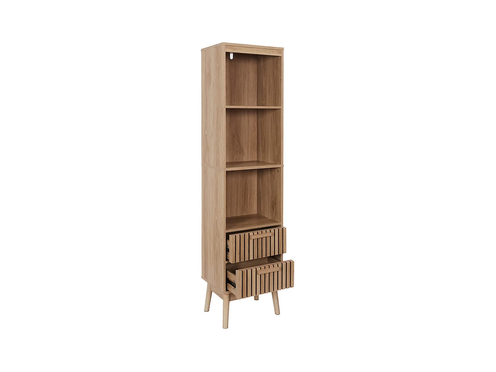 PAJAN - Rangement Colonne 3 Etagères 2 Tiroirs Effet Bois avec Tasseaux