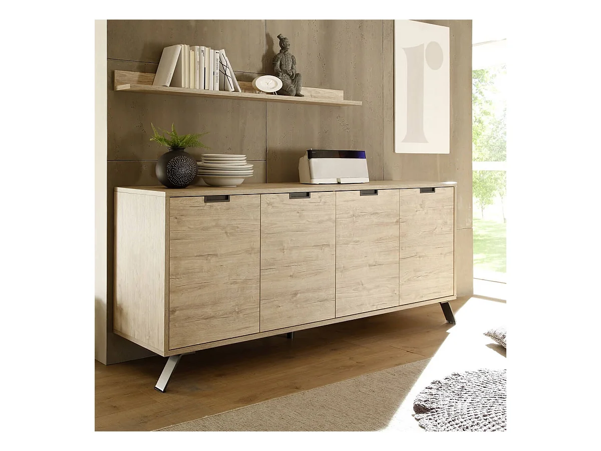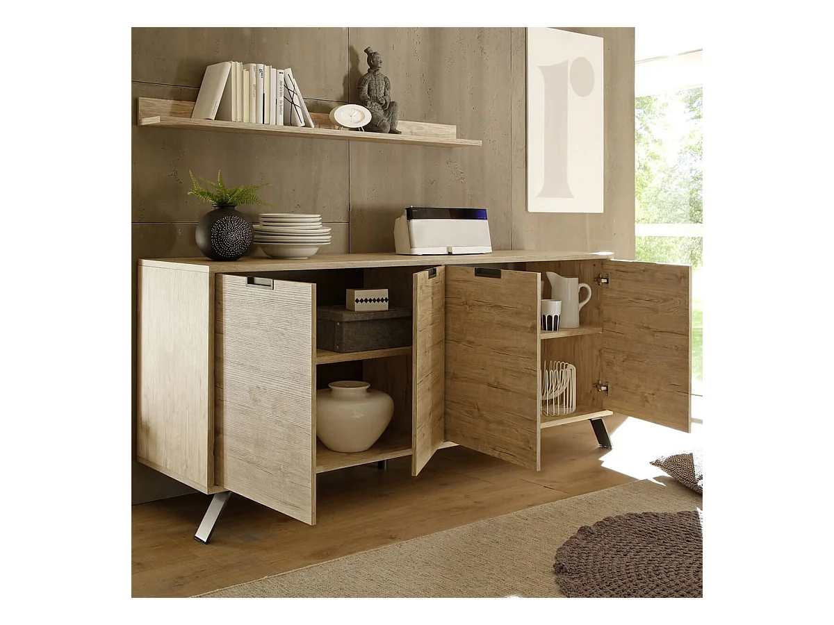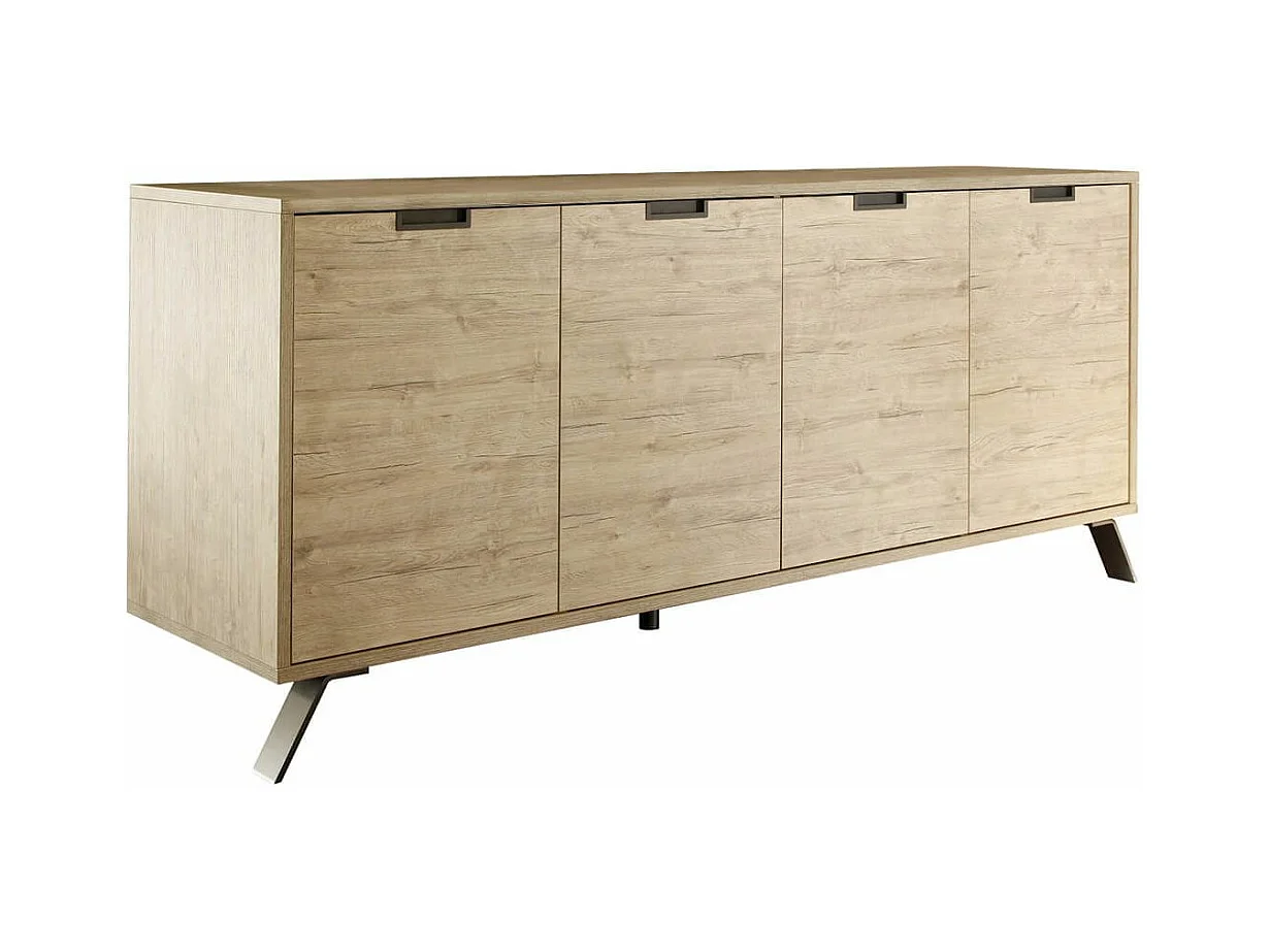 PALAMO - Buffet 4 Portes Aspect Bois Pieds Métal Gris Foncé