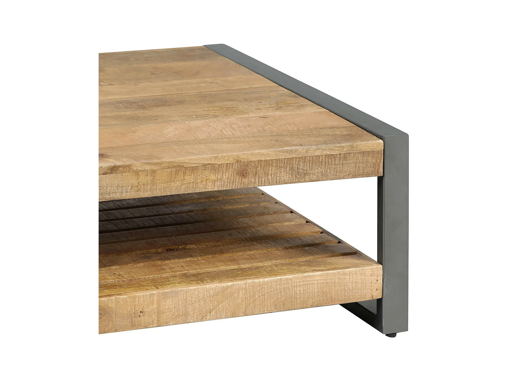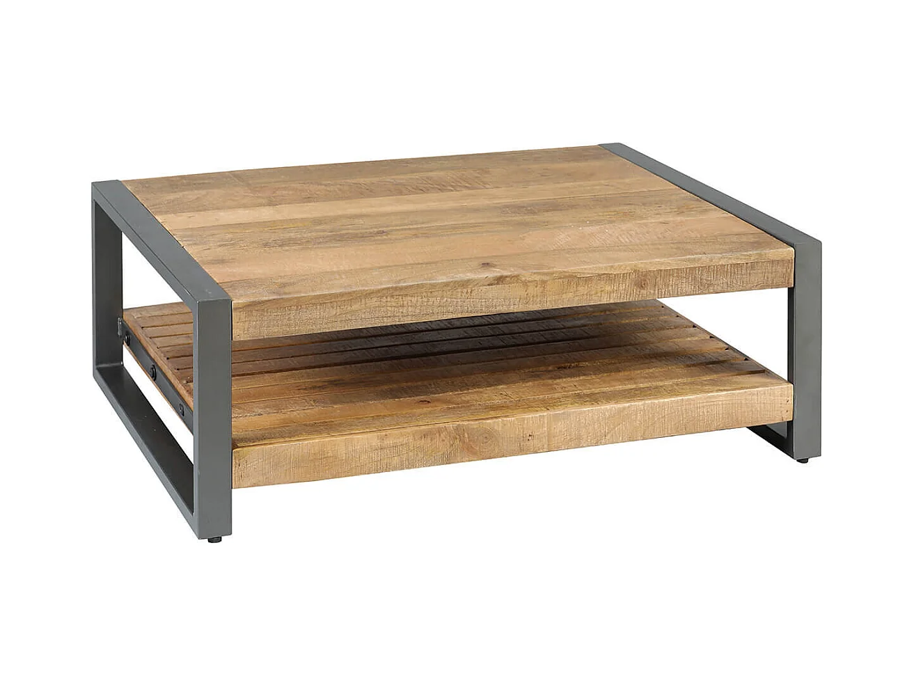 PALISSA - Table Basse avec Etagère Bois et Acier Patiné