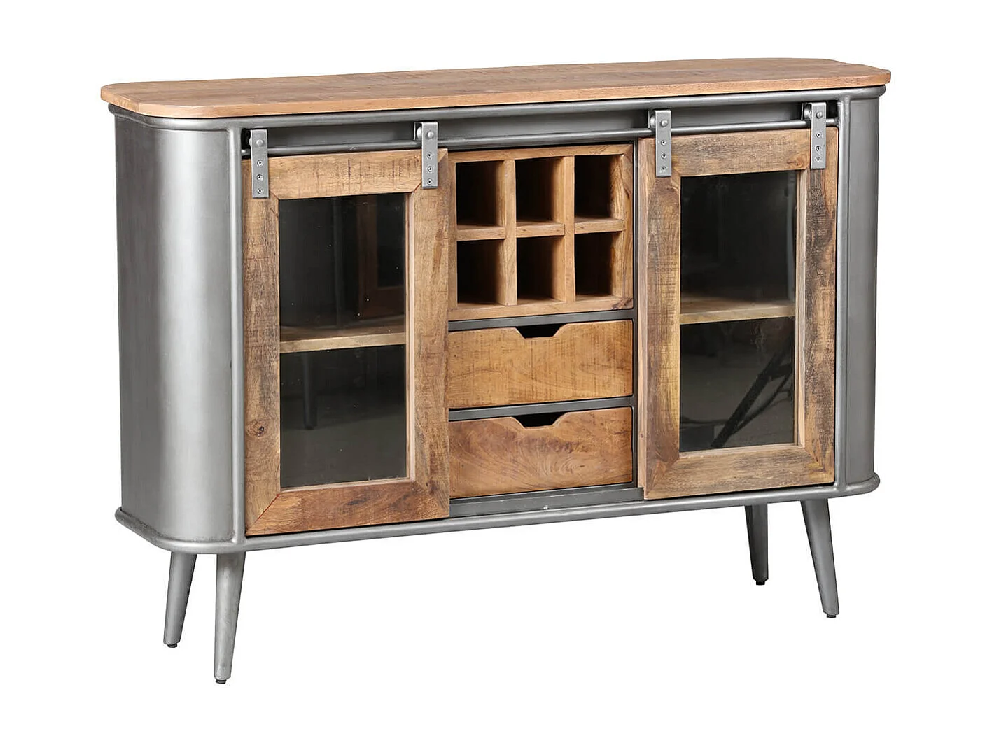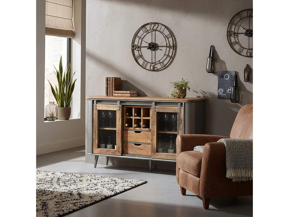 PALISSO - Buffet 2 Portes 2 Tiroirs Bois et Acier Patiné