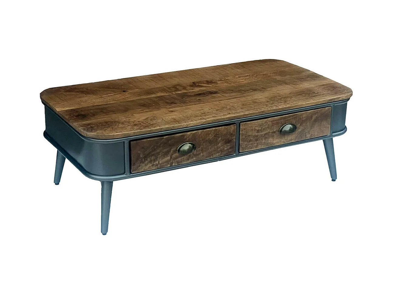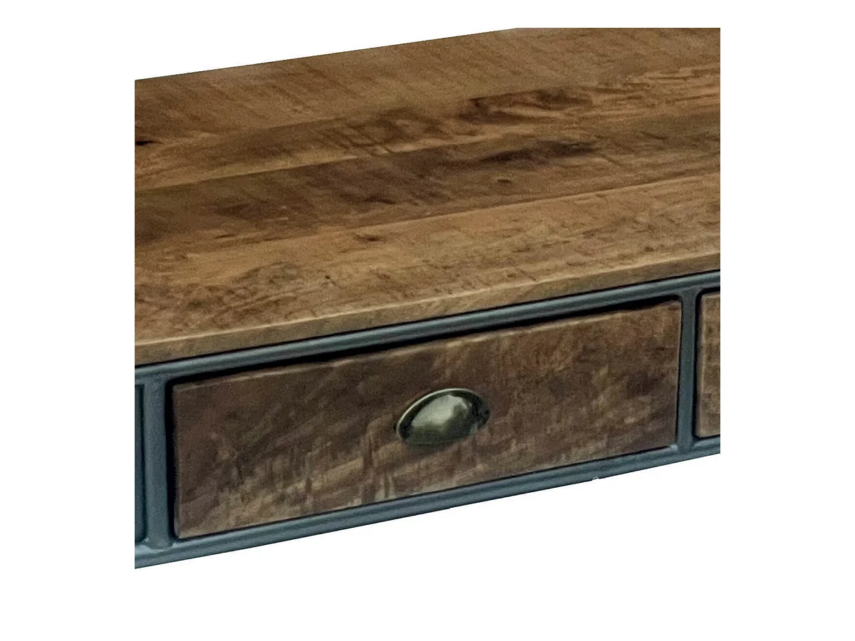 PALISSO - Table Basse 2 Tiroirs Bois et Acier Patiné
