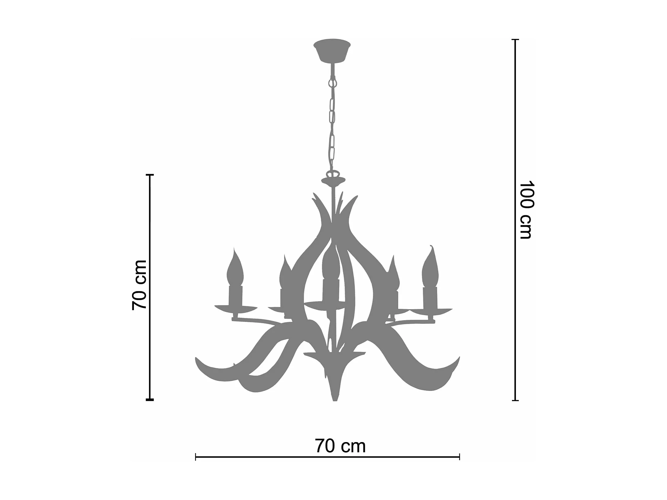 Lustre flame 5 bras métal noir 100 cm.