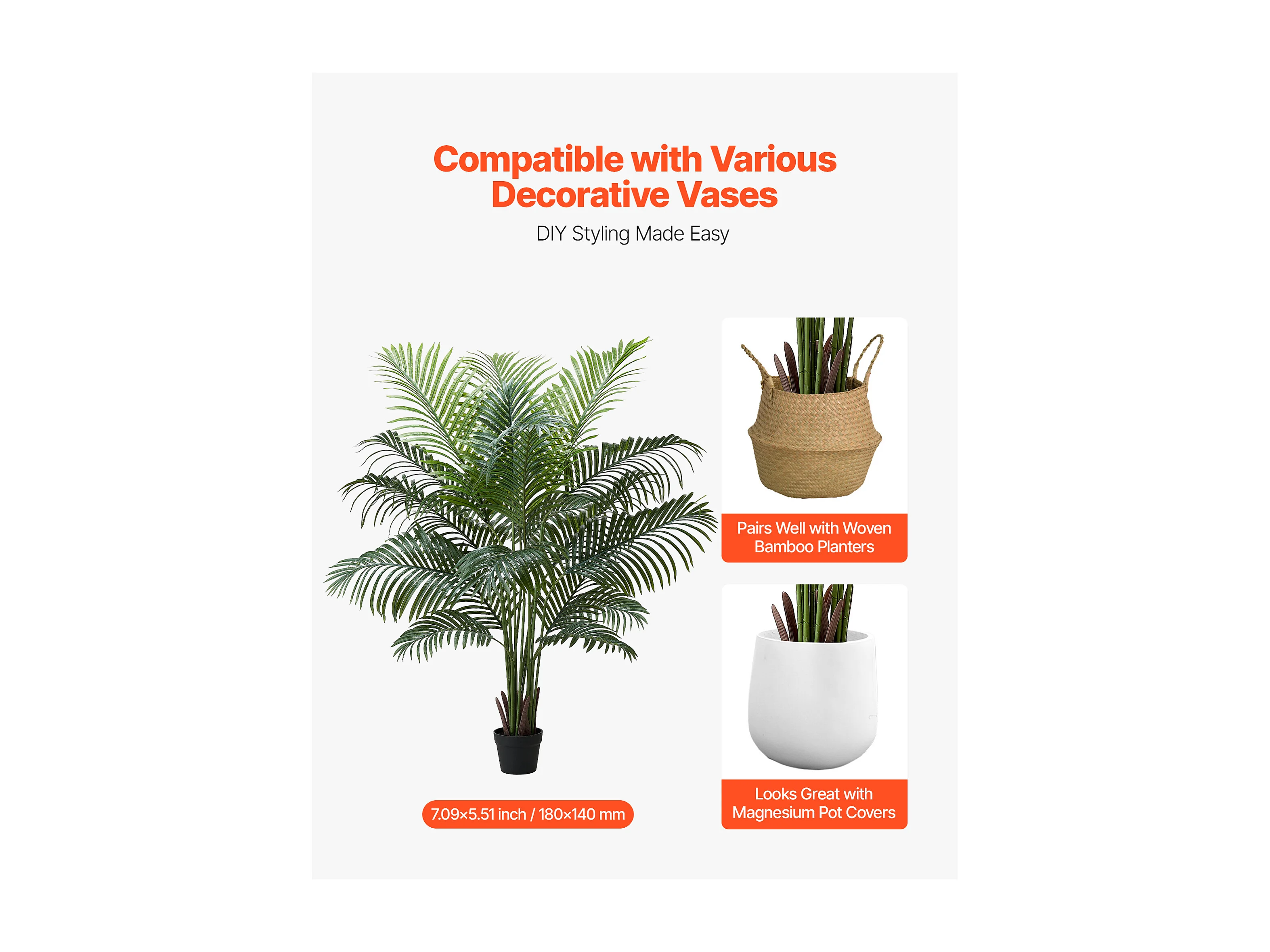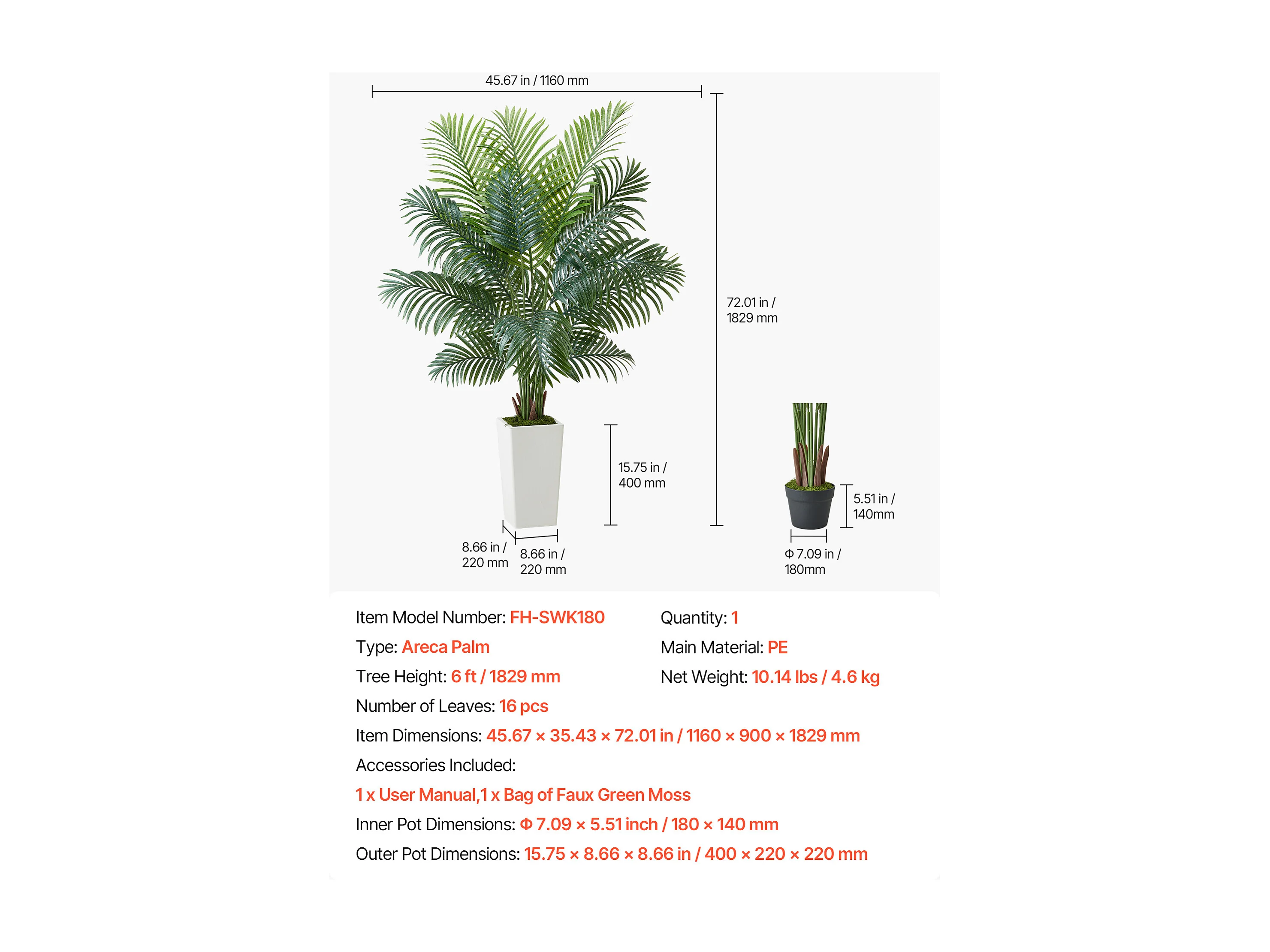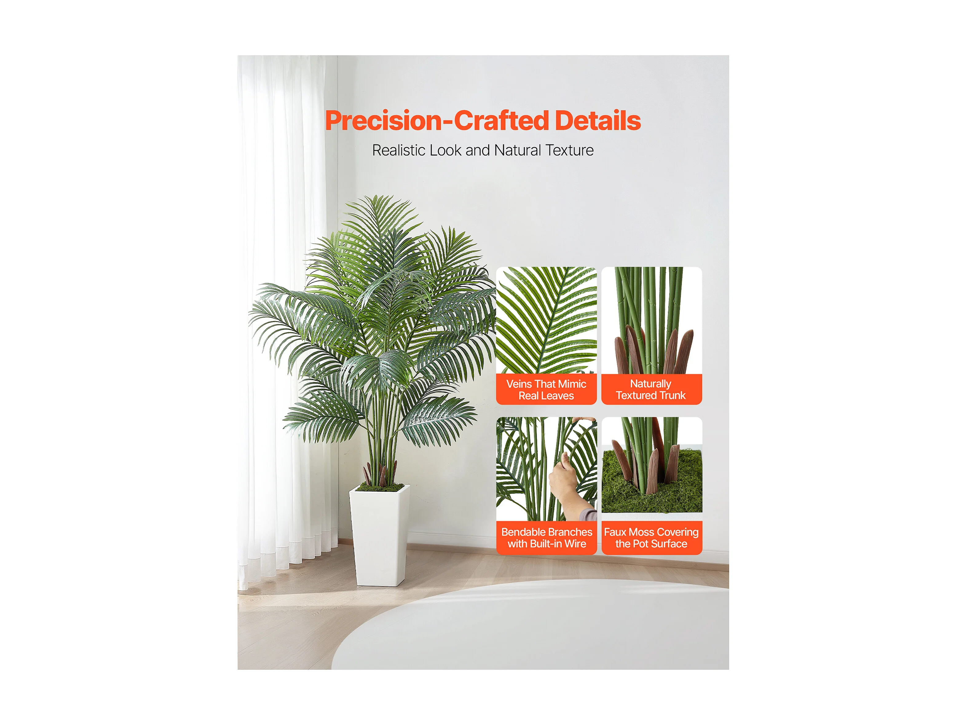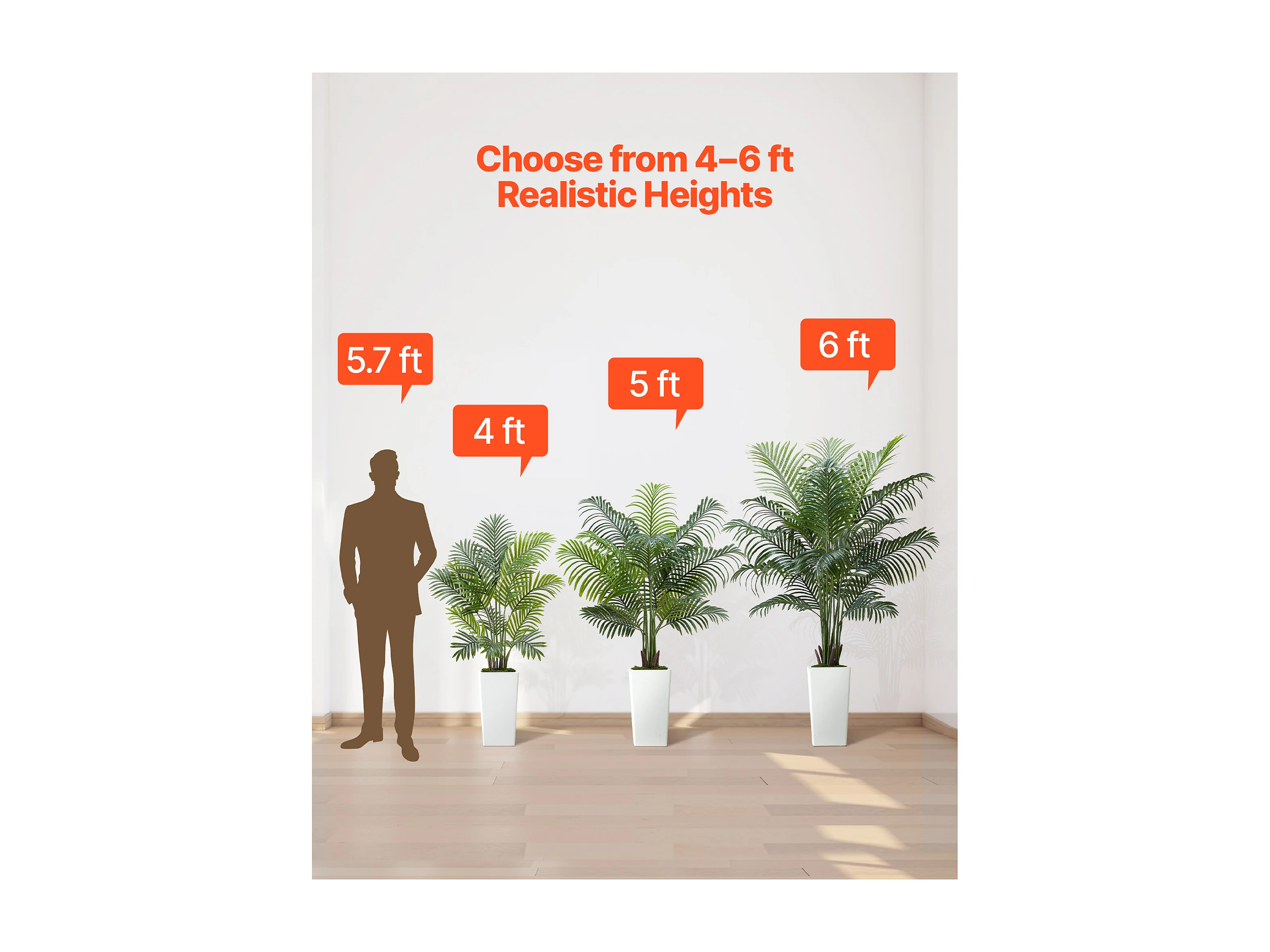 Palmier Artificiel Areca SucceBuy, 1,8 m, Plante Artificielle Tropicale en Pot Blanc, Faux Arbre Tropical Palmier Areca, Fausse Plante pour Salon