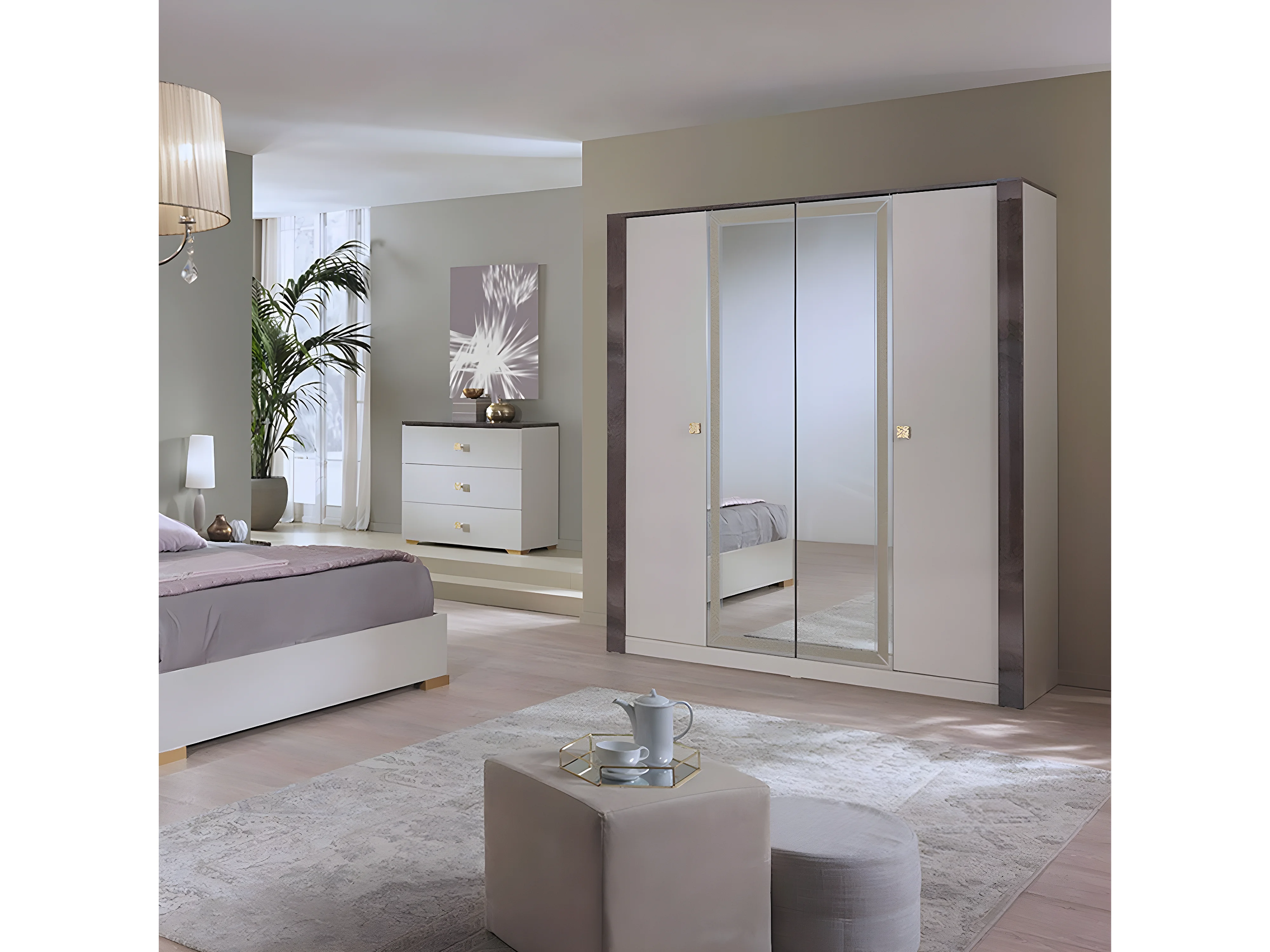 PANACA - Armoire 4 Portes Coloris Crème et Bronze
