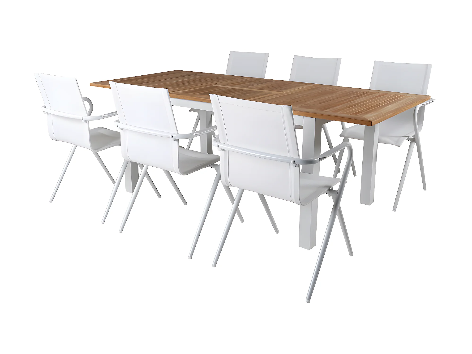Panama Ensemble table et chaises de jardin, table 90x152/210cm et 6 chaises Alina, blanc, naturel.