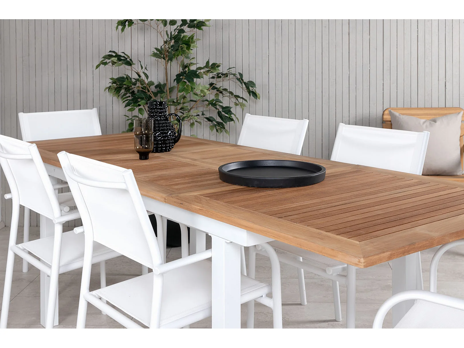 Panama Ensemble table et chaises de jardin, table 90x152/210cm et 6 chaises Santorini, blanc, naturel.