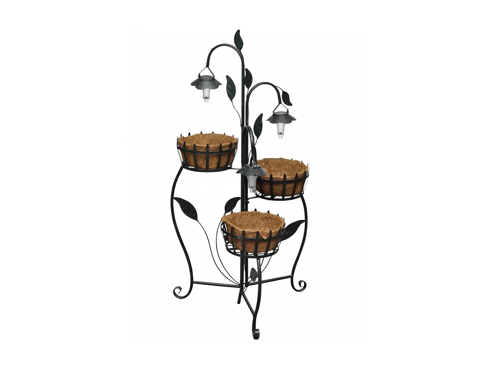 Panier à fleurs suspendu en fibre de coco avec LED solaire