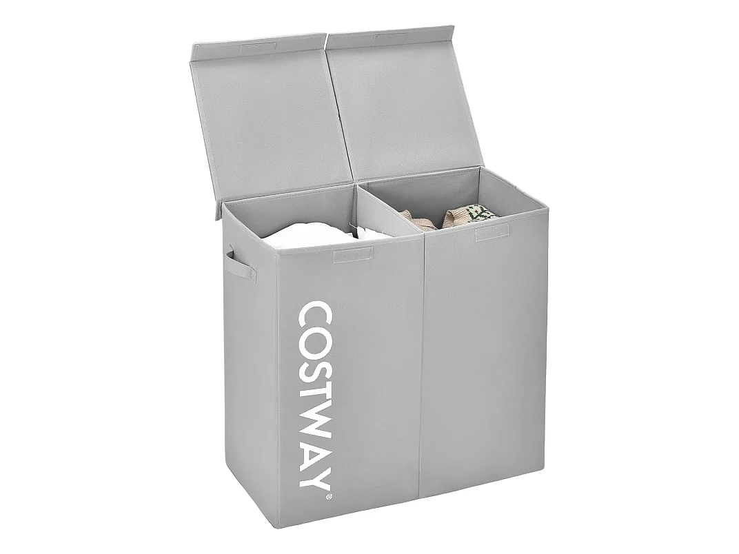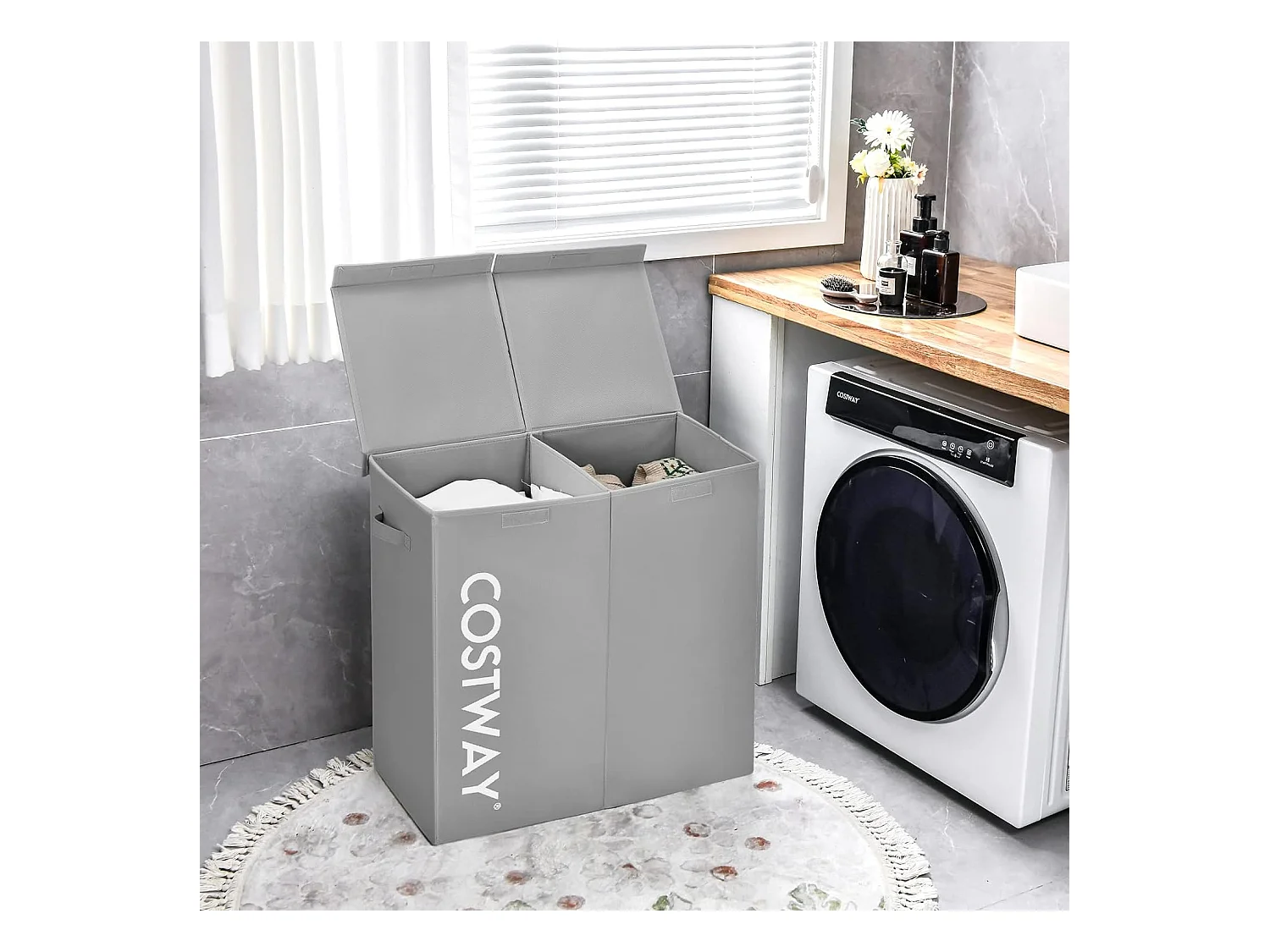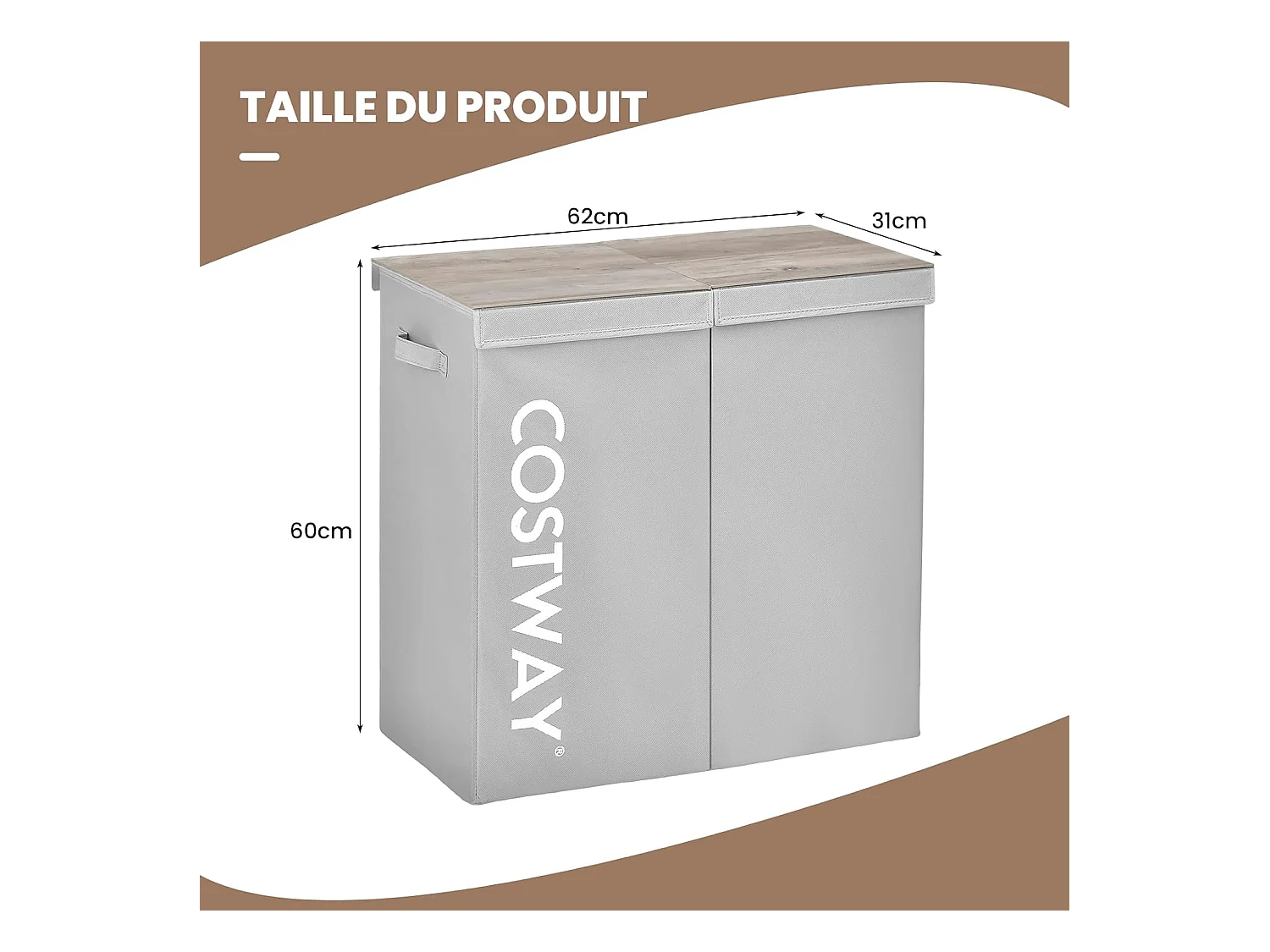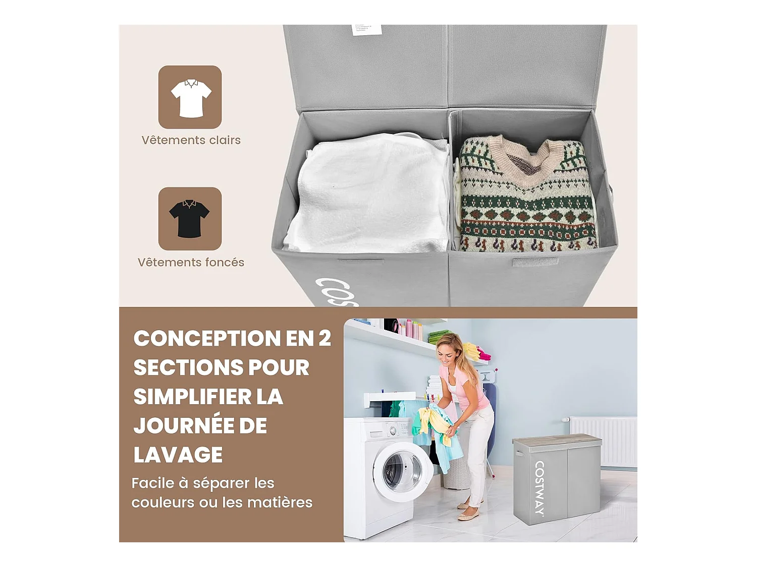 Panier à Linge 2 Compartiments, 62 x 31 x 60 CM, Gris