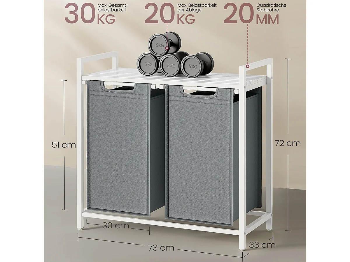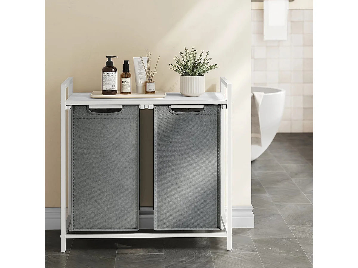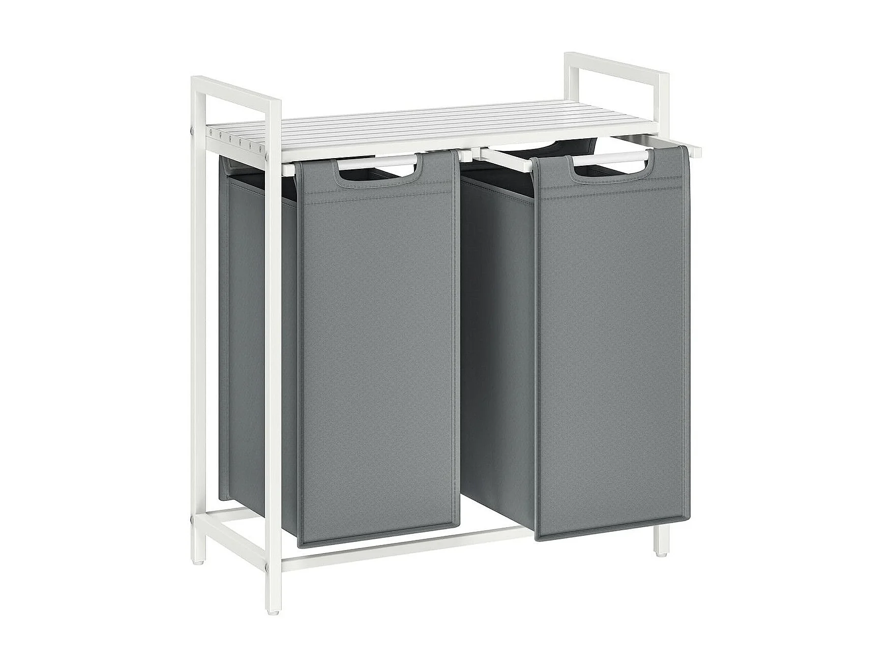 Panier à linge 2 compartiments blanc et gris - H71 cm