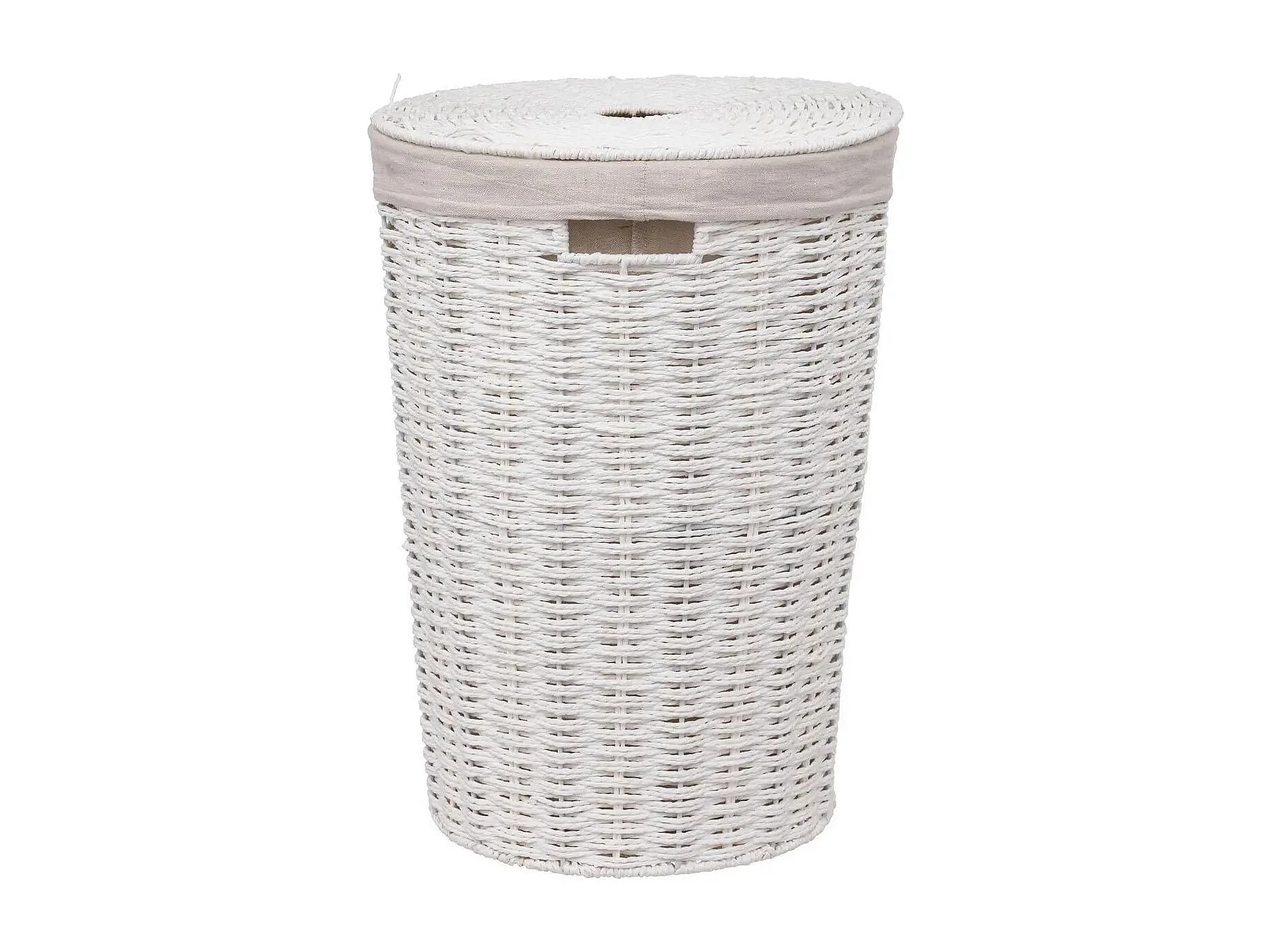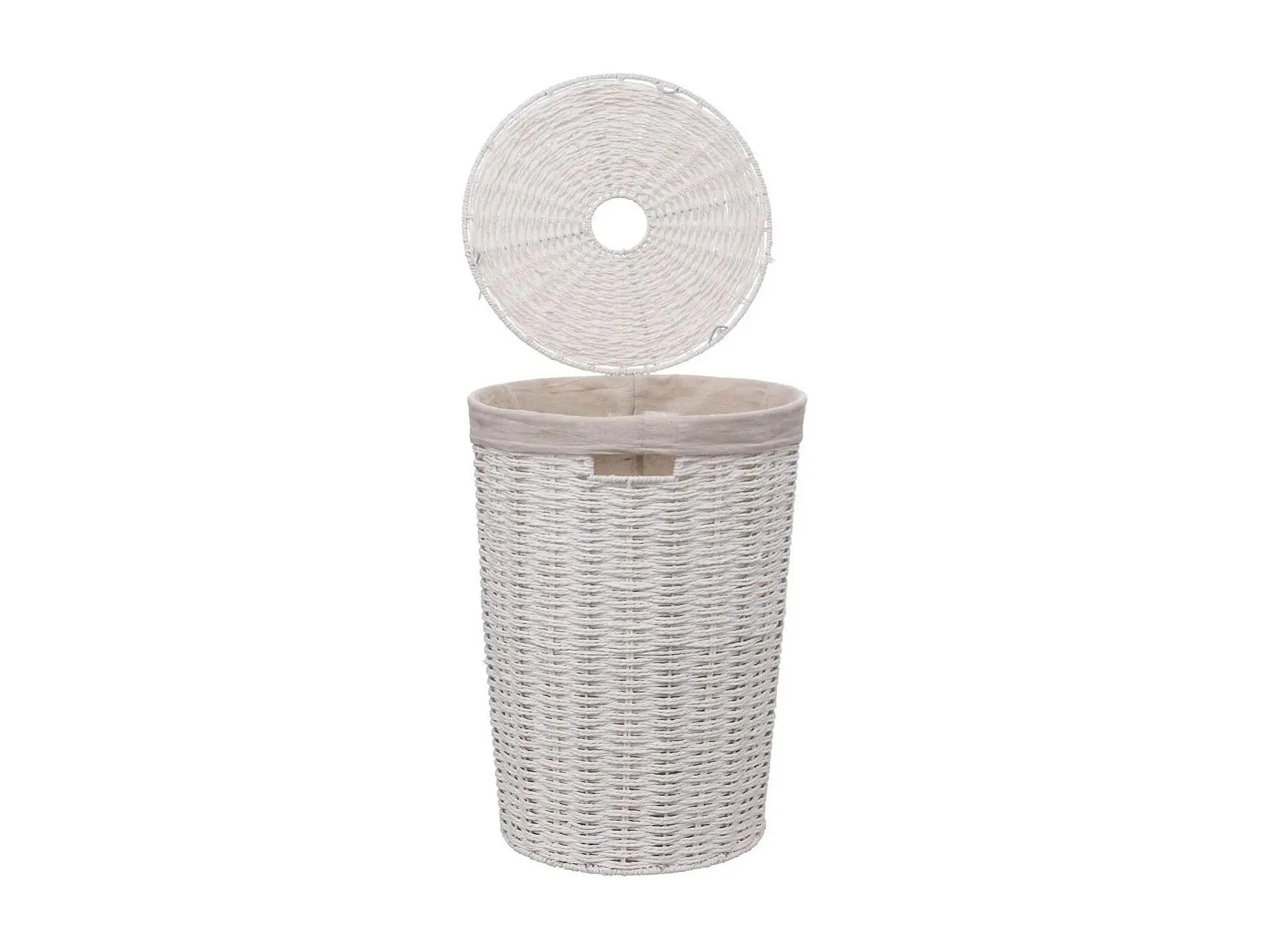 Panier à linge Valora blanc à 3 compartiments avec plateau en MDF style loft