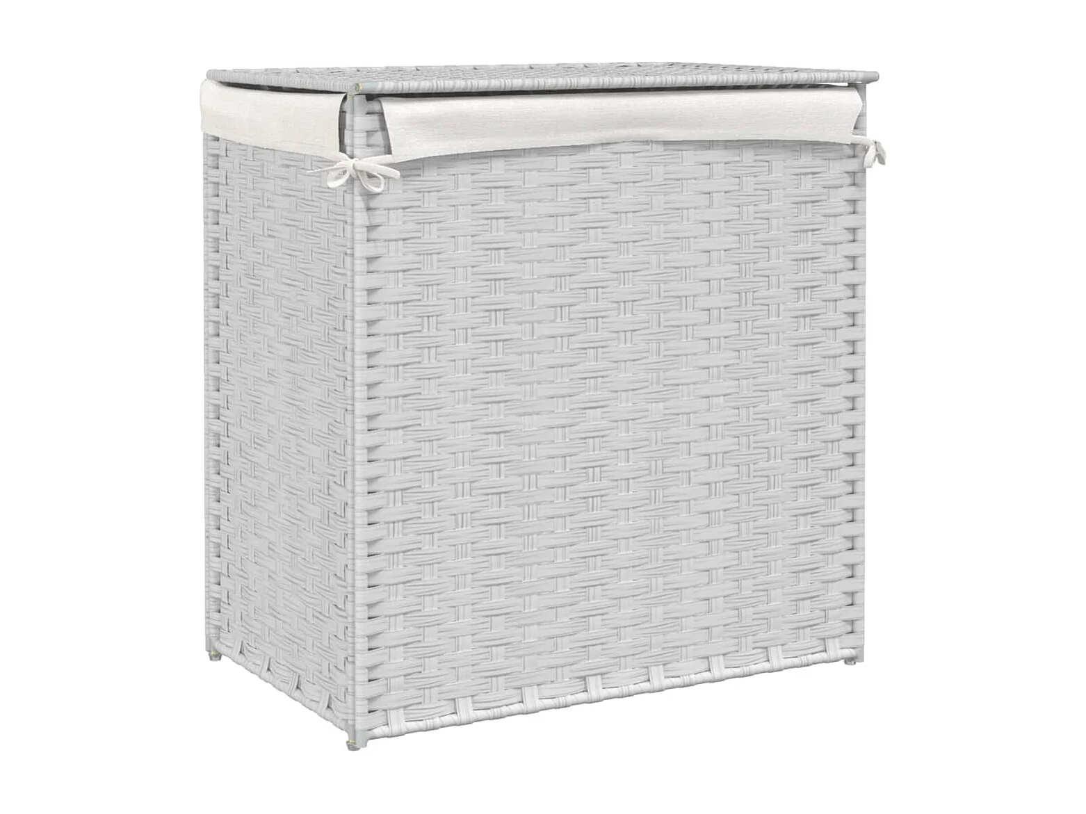 Panier à linge avec 2 sections blanc 53x35x57 cm résine tressée