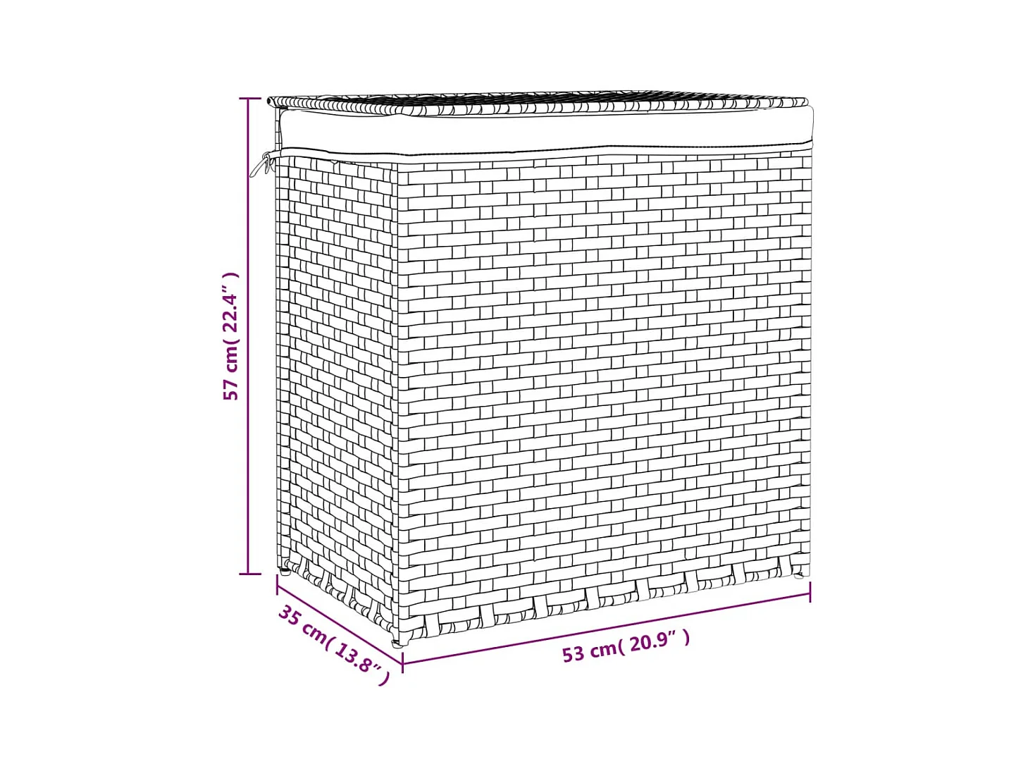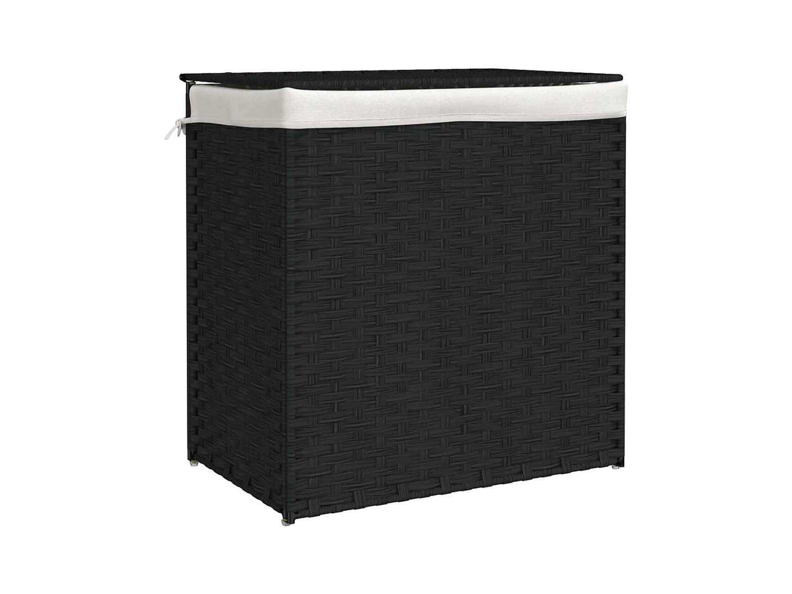 Panier à linge avec 2 sections noir 53x35x57 résine tressée