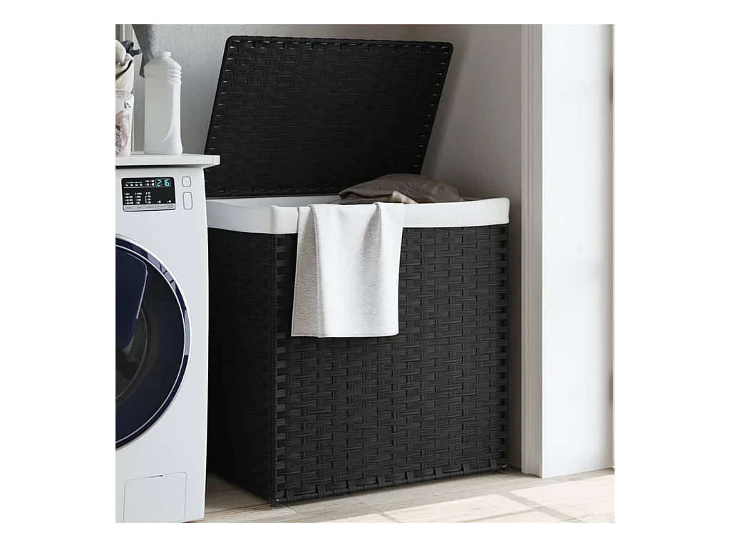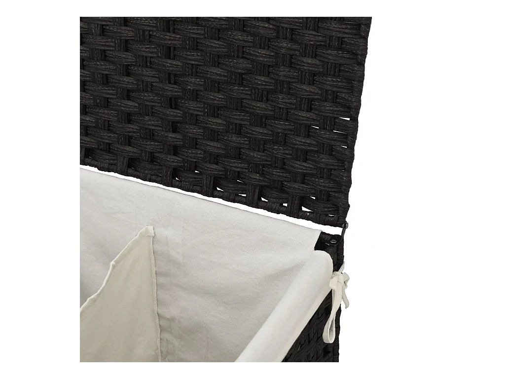 Panier à linge avec 2 sections noir 53x35x57 cm résine tressée