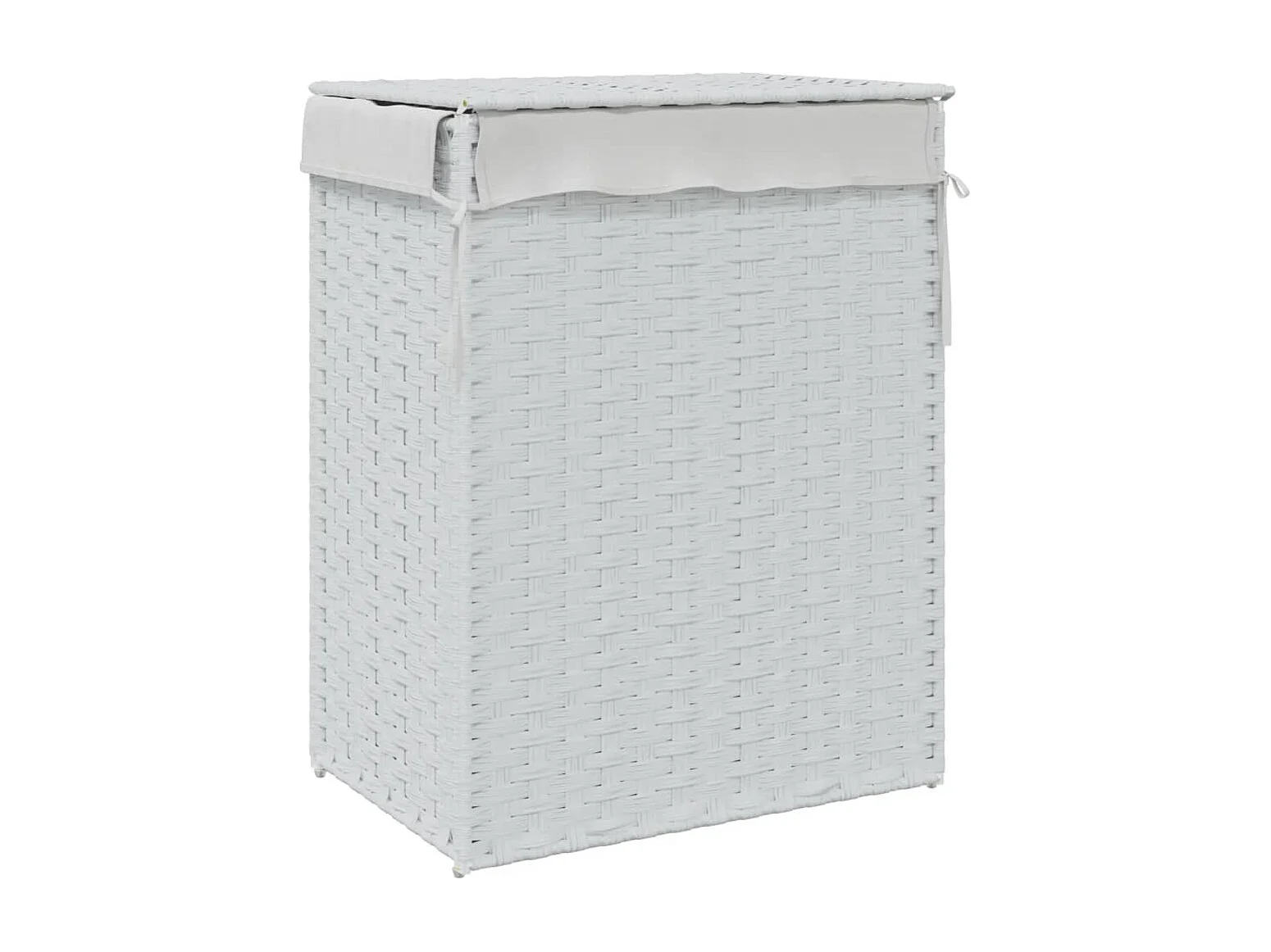 Panier à linge avec 2 sections blanc 53x35x57 résine tressée