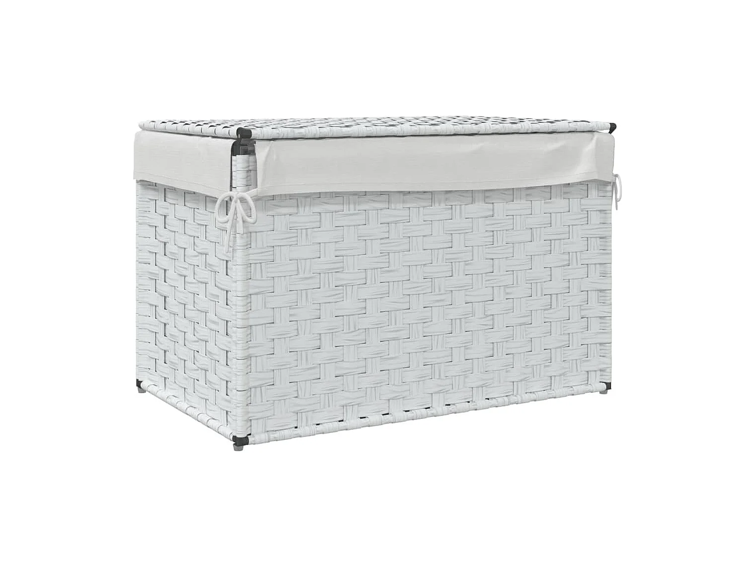 Panier à linge avec couvercle blanc 55,5x35x34cm résine tressée