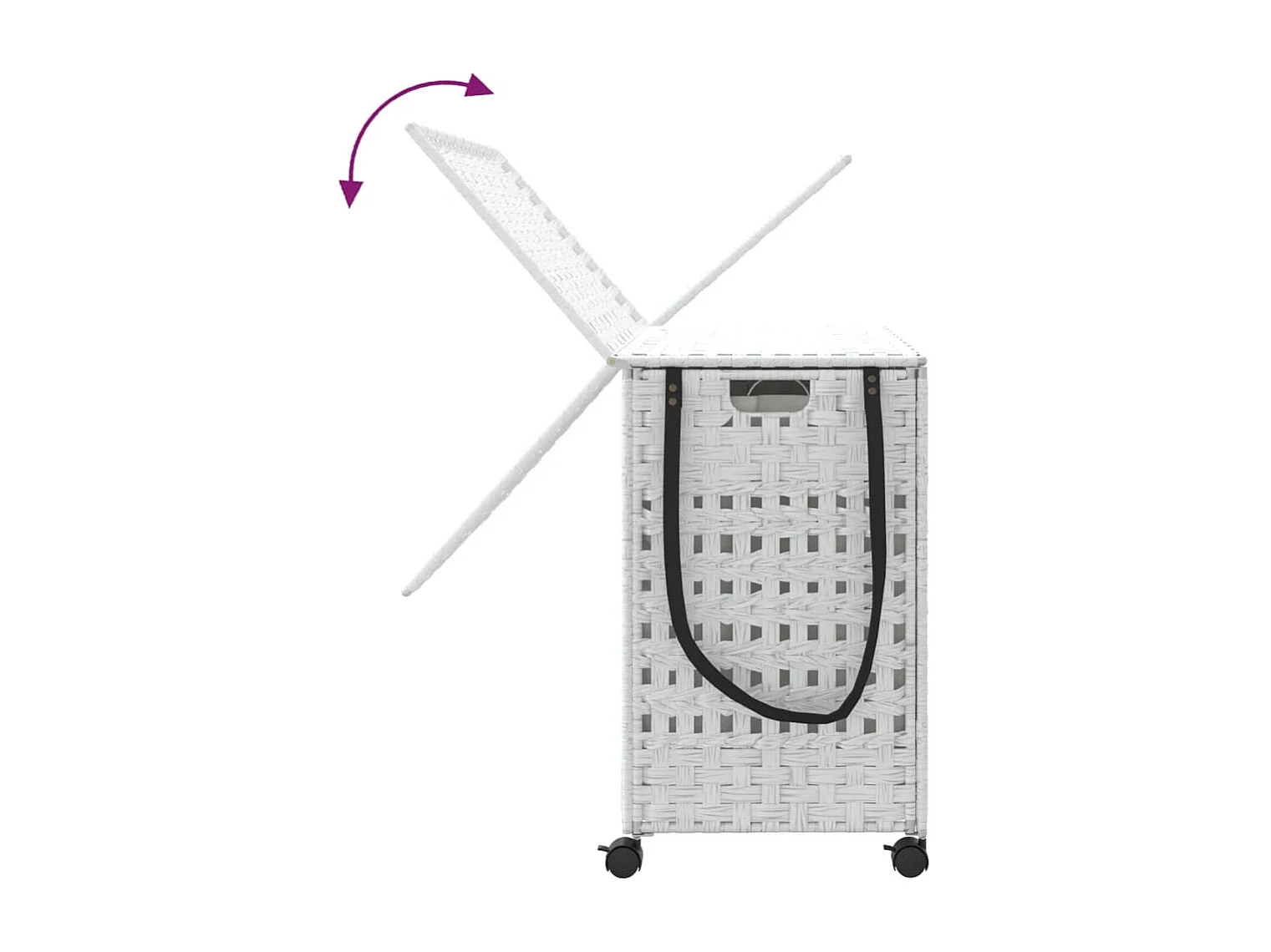 Panier à linge avec roulettes blanc 66x35x60 résine tressée