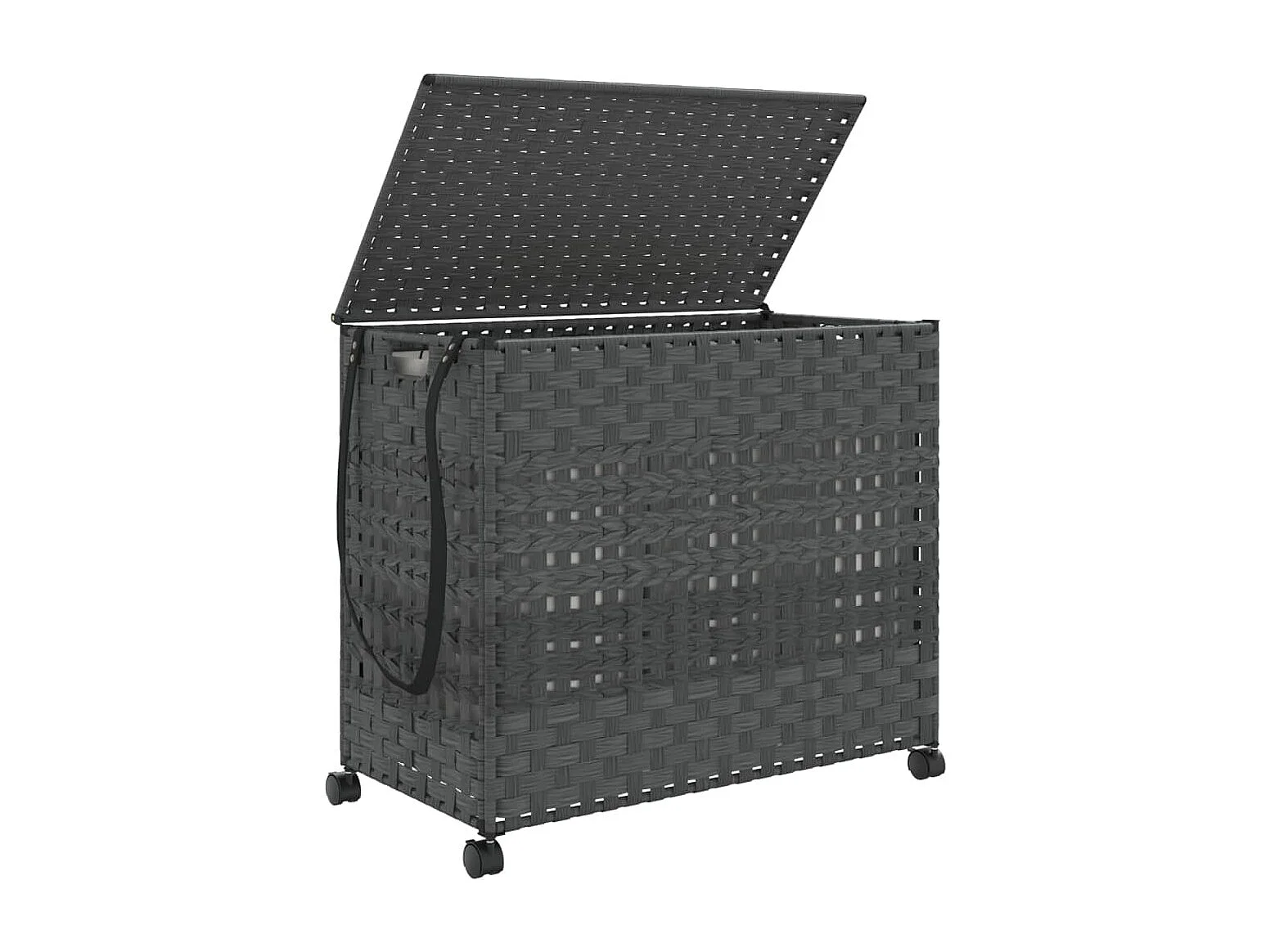 Panier à linge avec roulettes gris 66x35x60 résine tressée