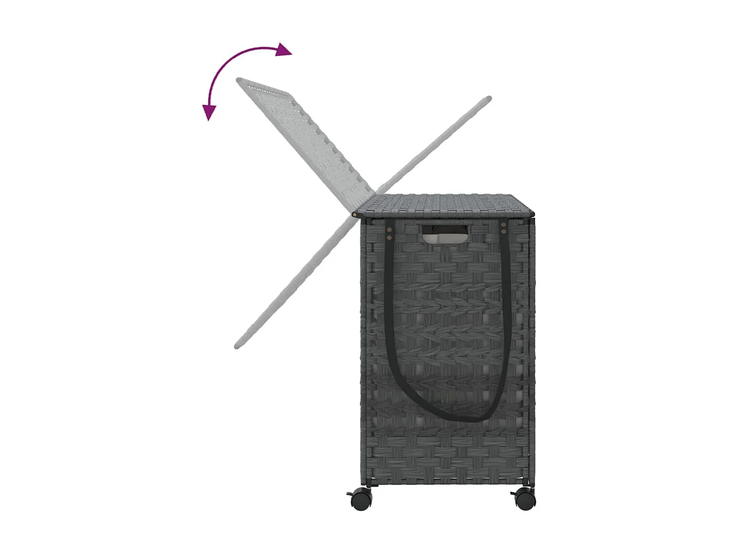 Panier à linge avec roulettes gris 66x35x60 cm résine tressée