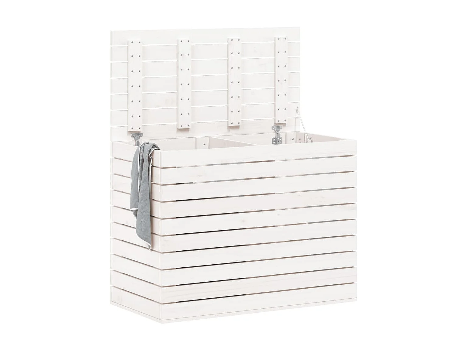 Panier à linge blanc 88,5x44x66 bois massif de pin