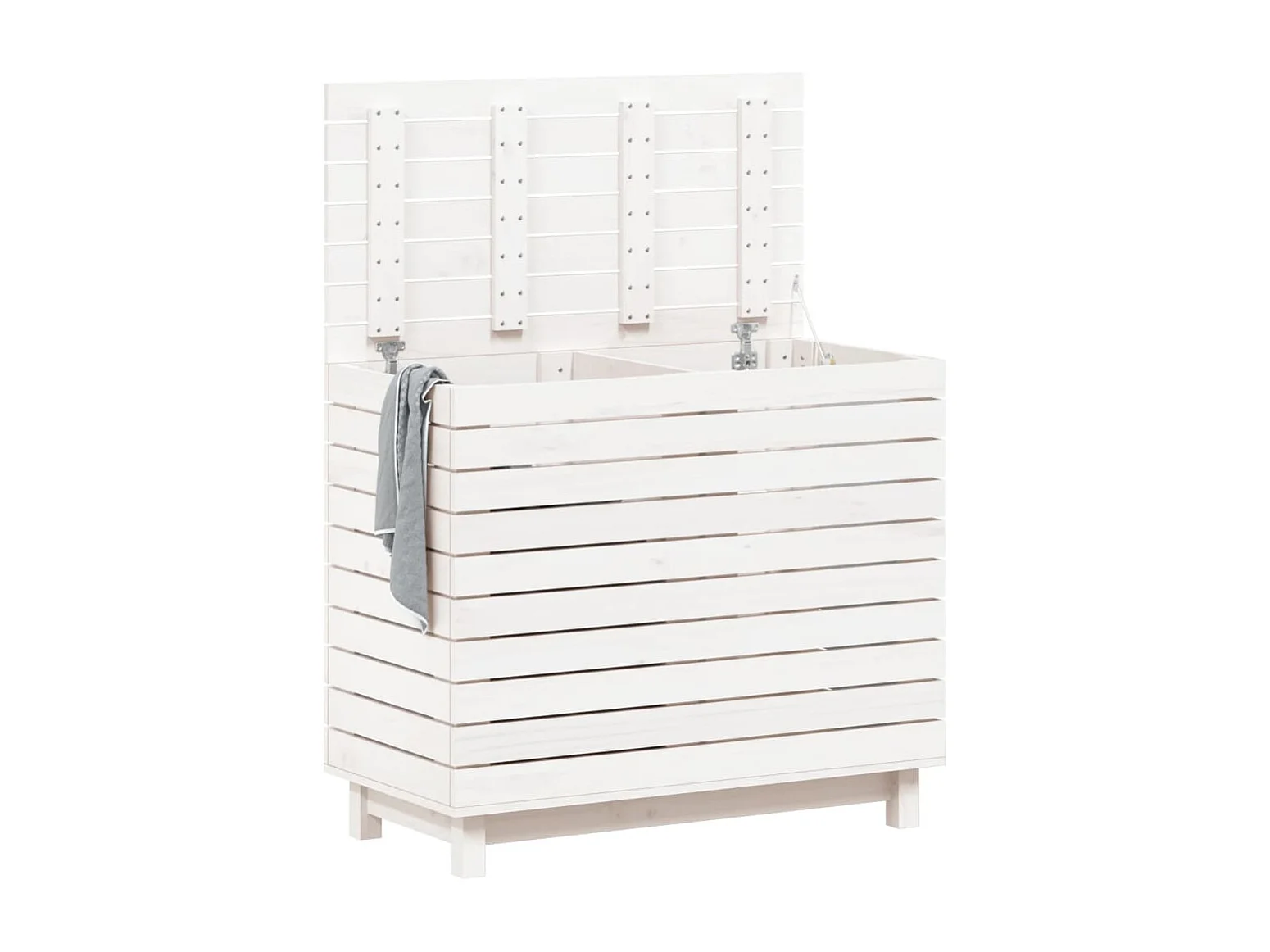 Panier à linge blanc 88,5x44x76 Bois massif de pin