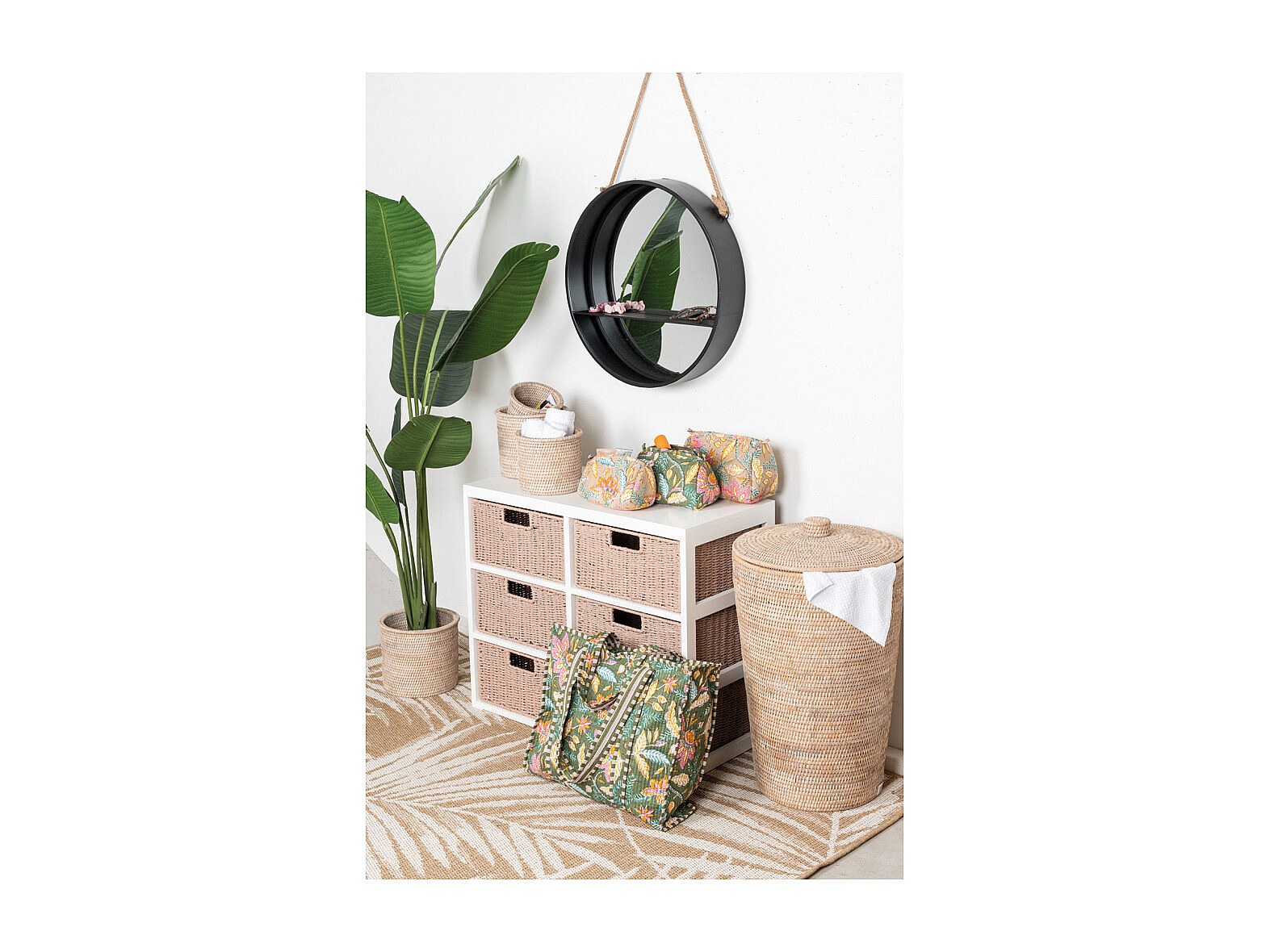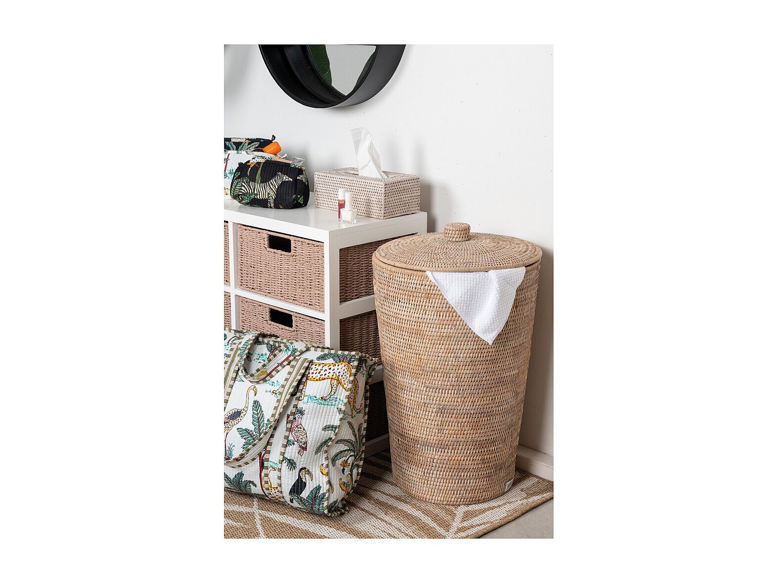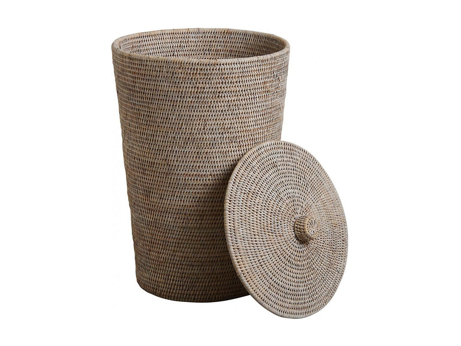 Panier à linge en rotin patiné blanc