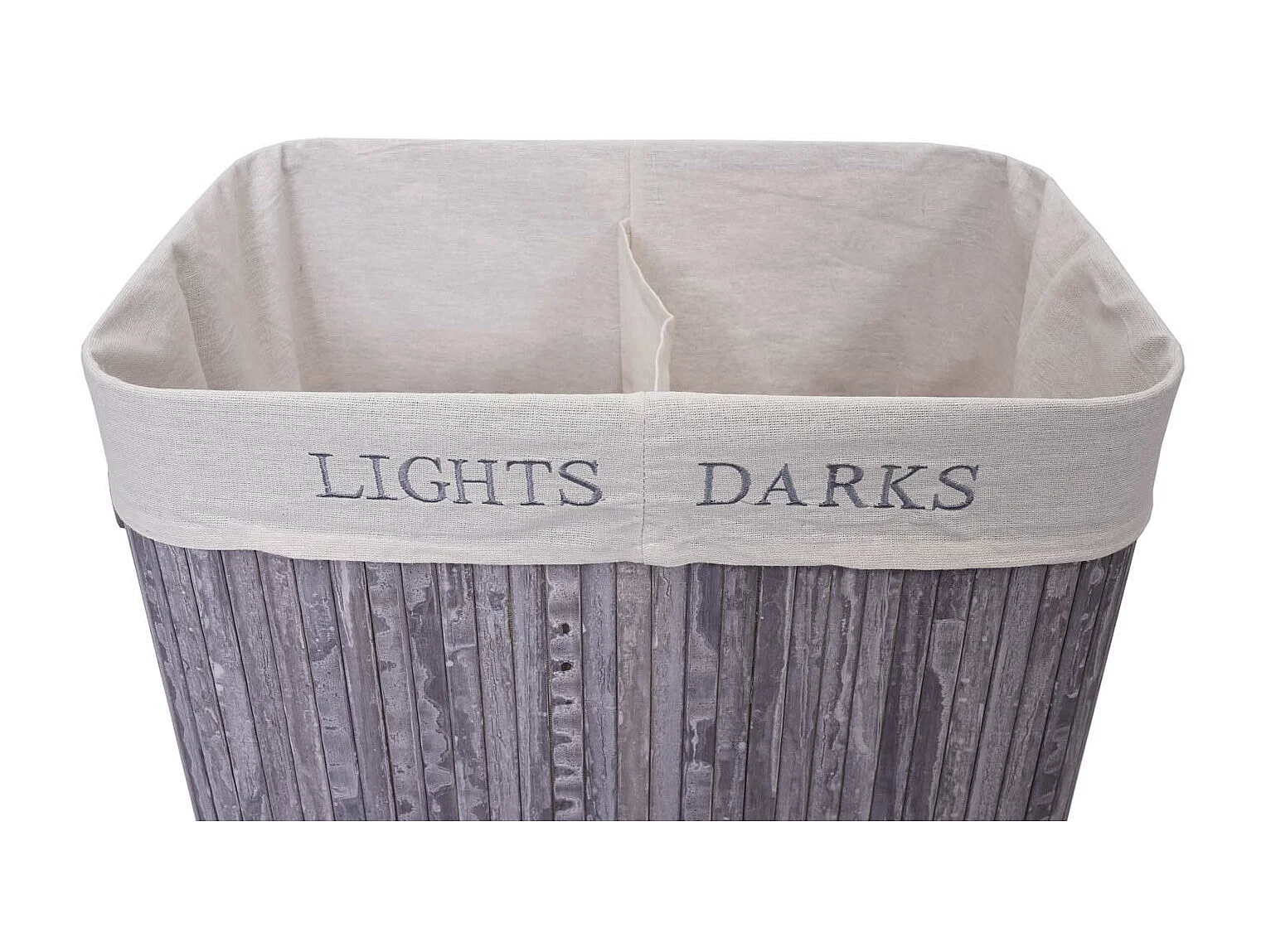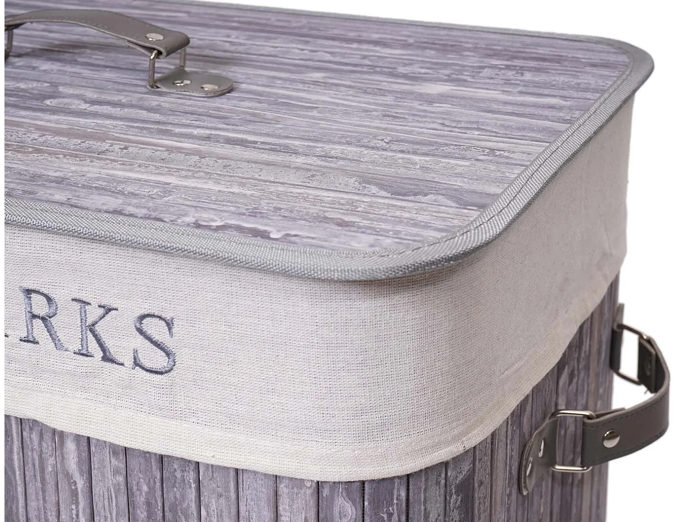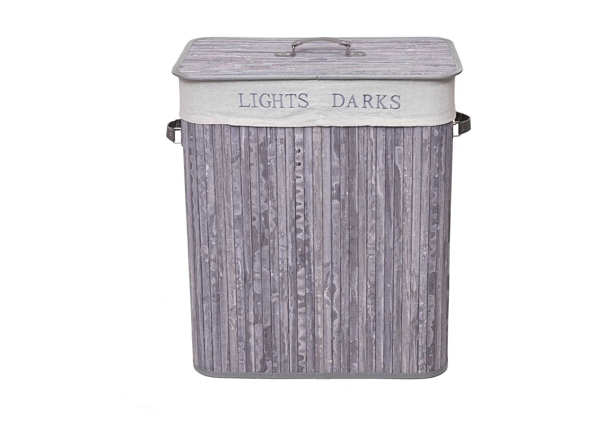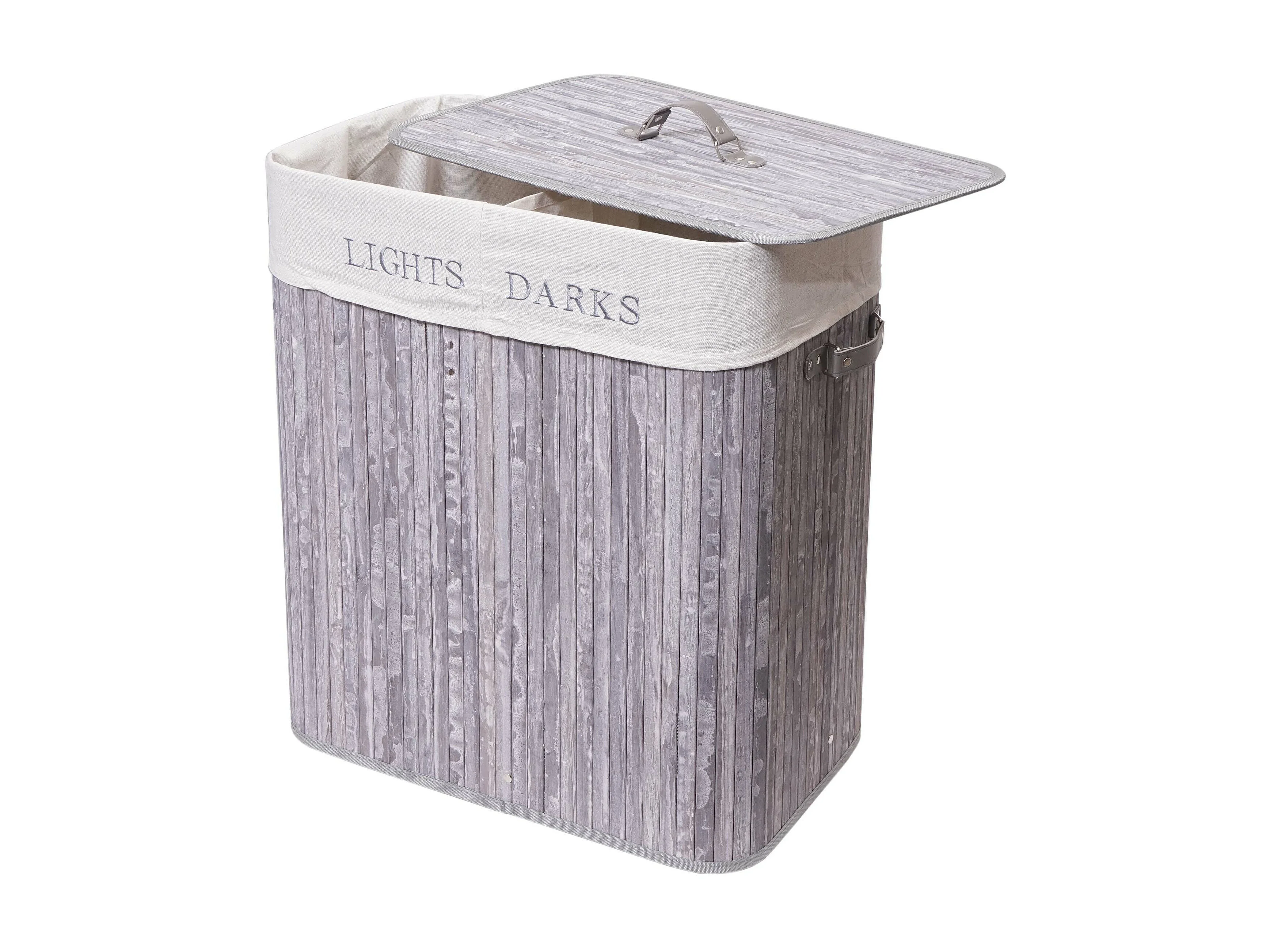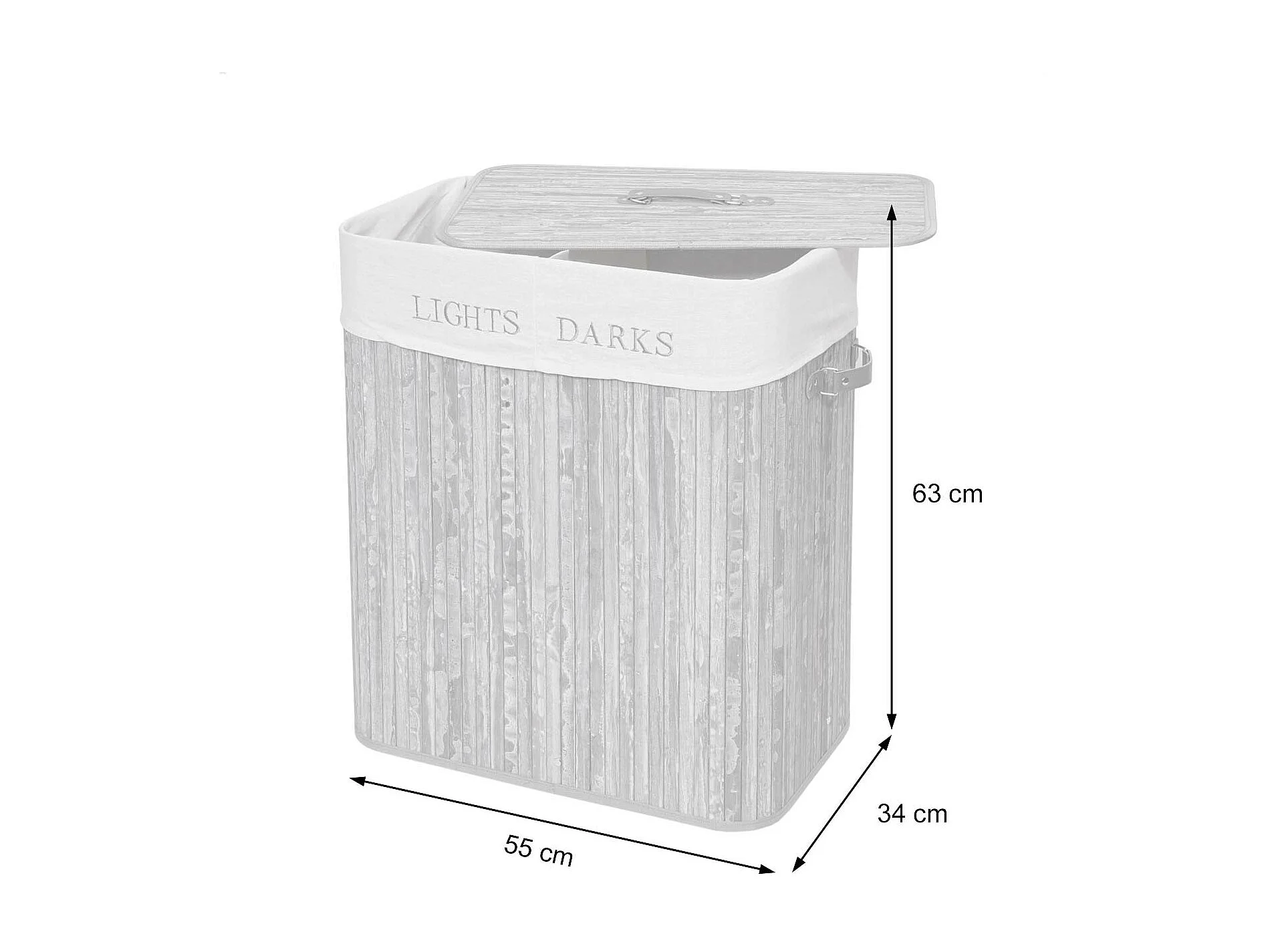 Panier à linge HWC-C21, bac à linge, collecteur, bambou, 2 compartiments 63x55x34cm 100l - gris-bleu