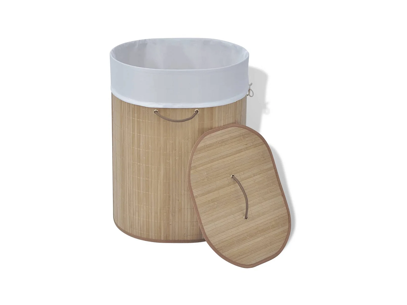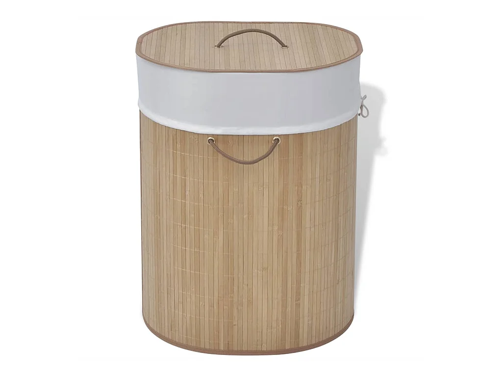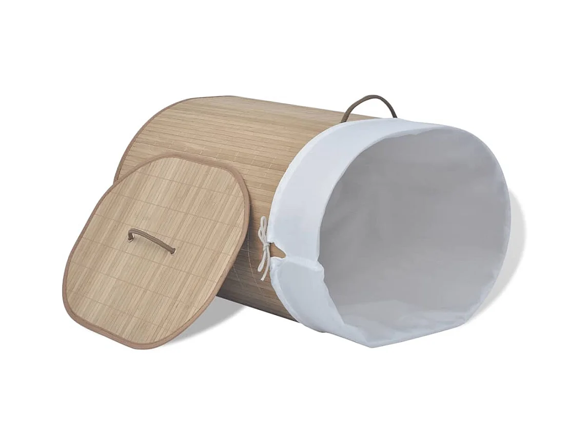 Panier à linge pliable en bambou avec 3 poignées, 72L - L40 x H60 cm