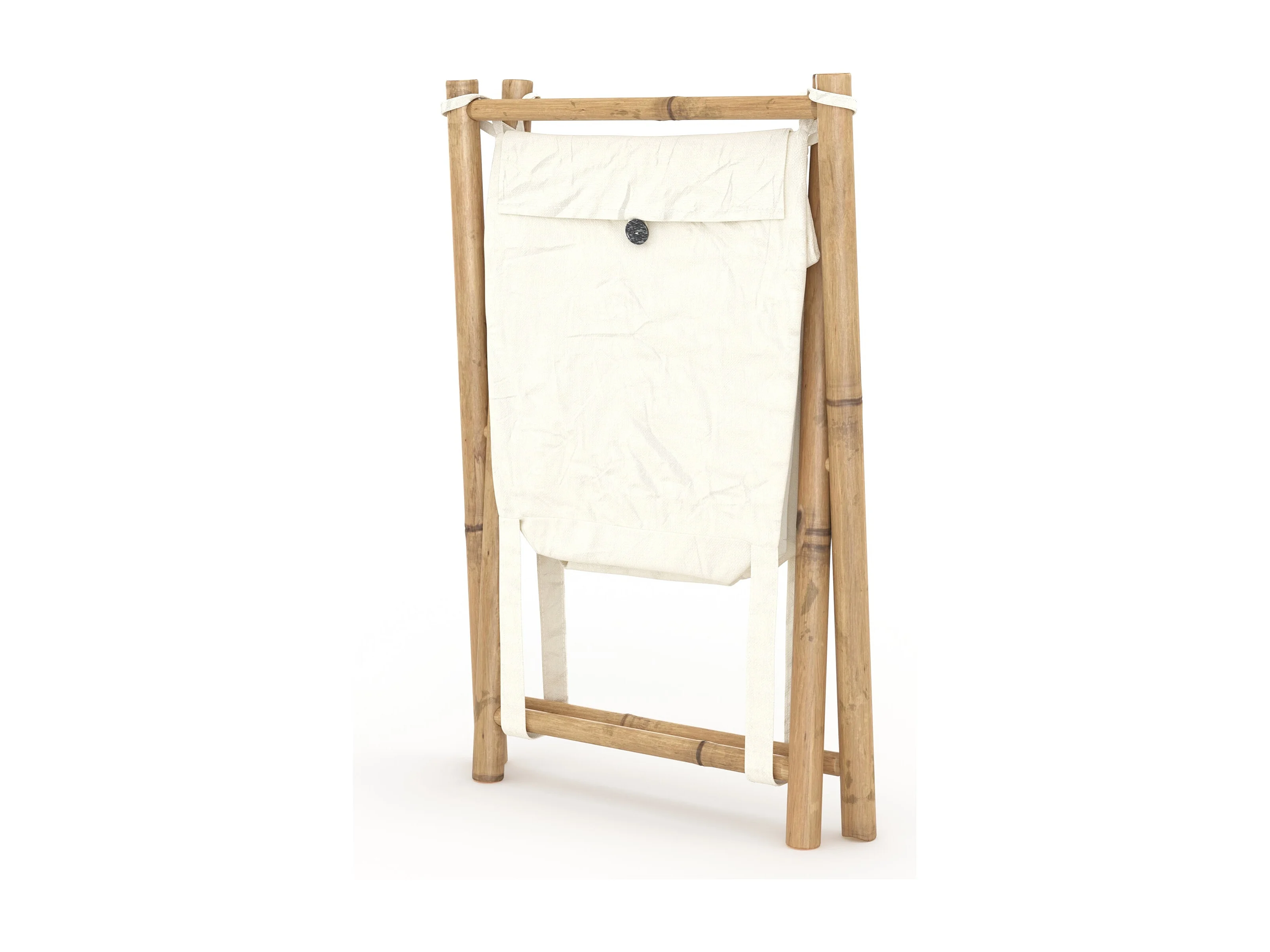 Panier à linge pliable en tissu blanc et bambou - Bami