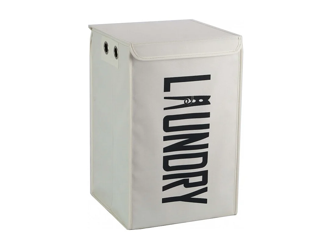 Panier à linge pliant carré en tissu blanc cassé avec couvercle - BASKET