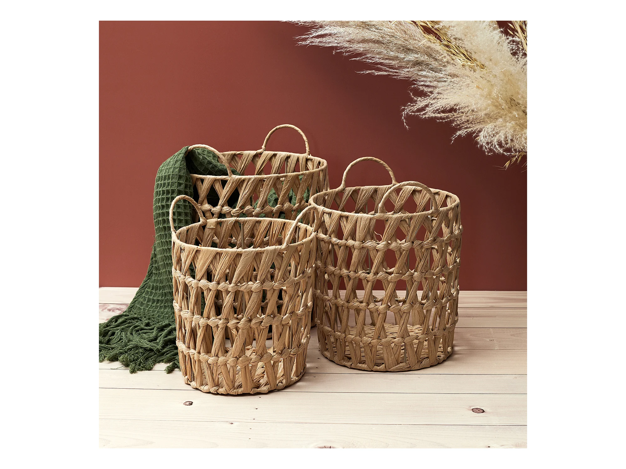 Set de 3 paniers en osier doublés marrons