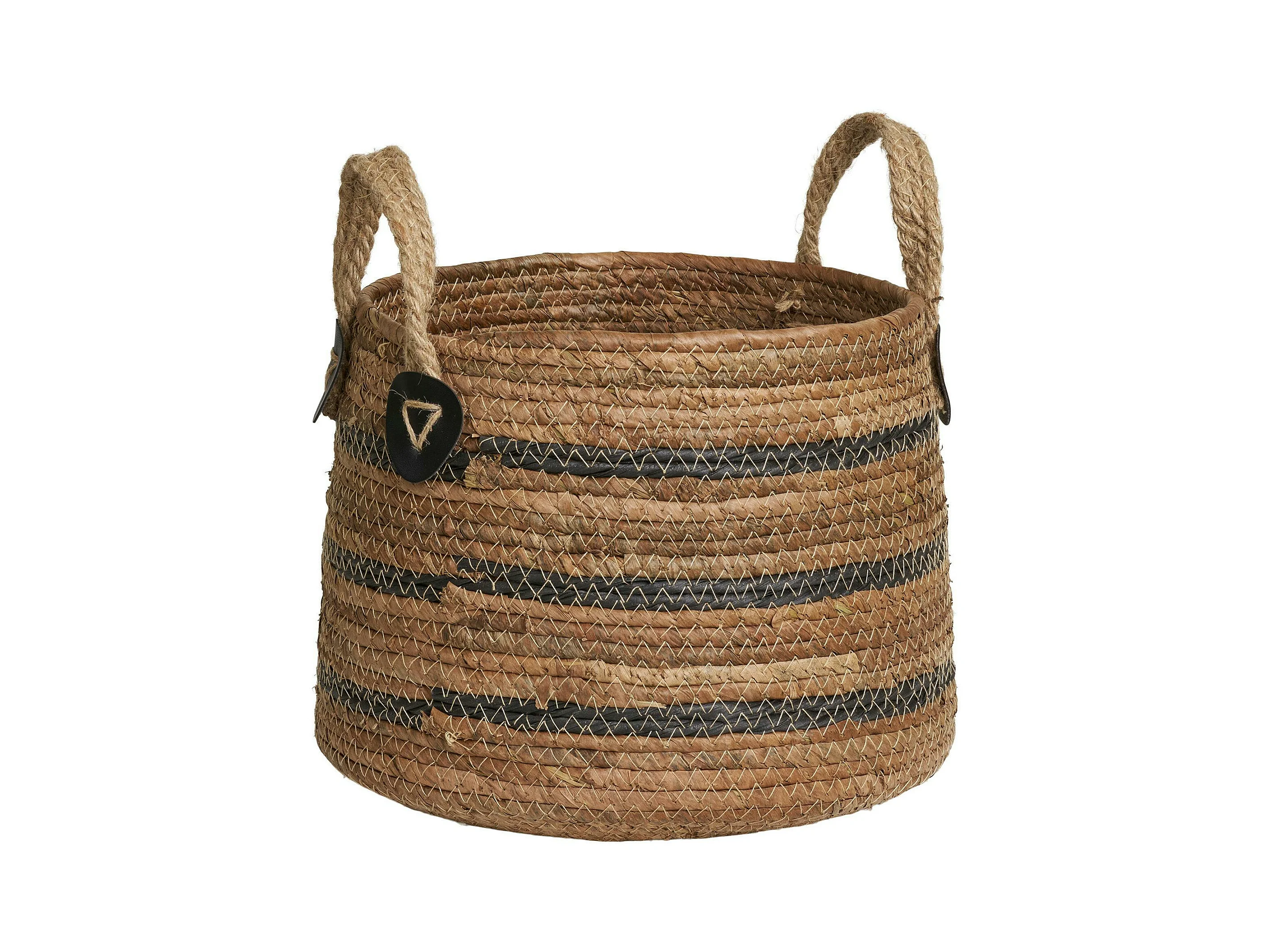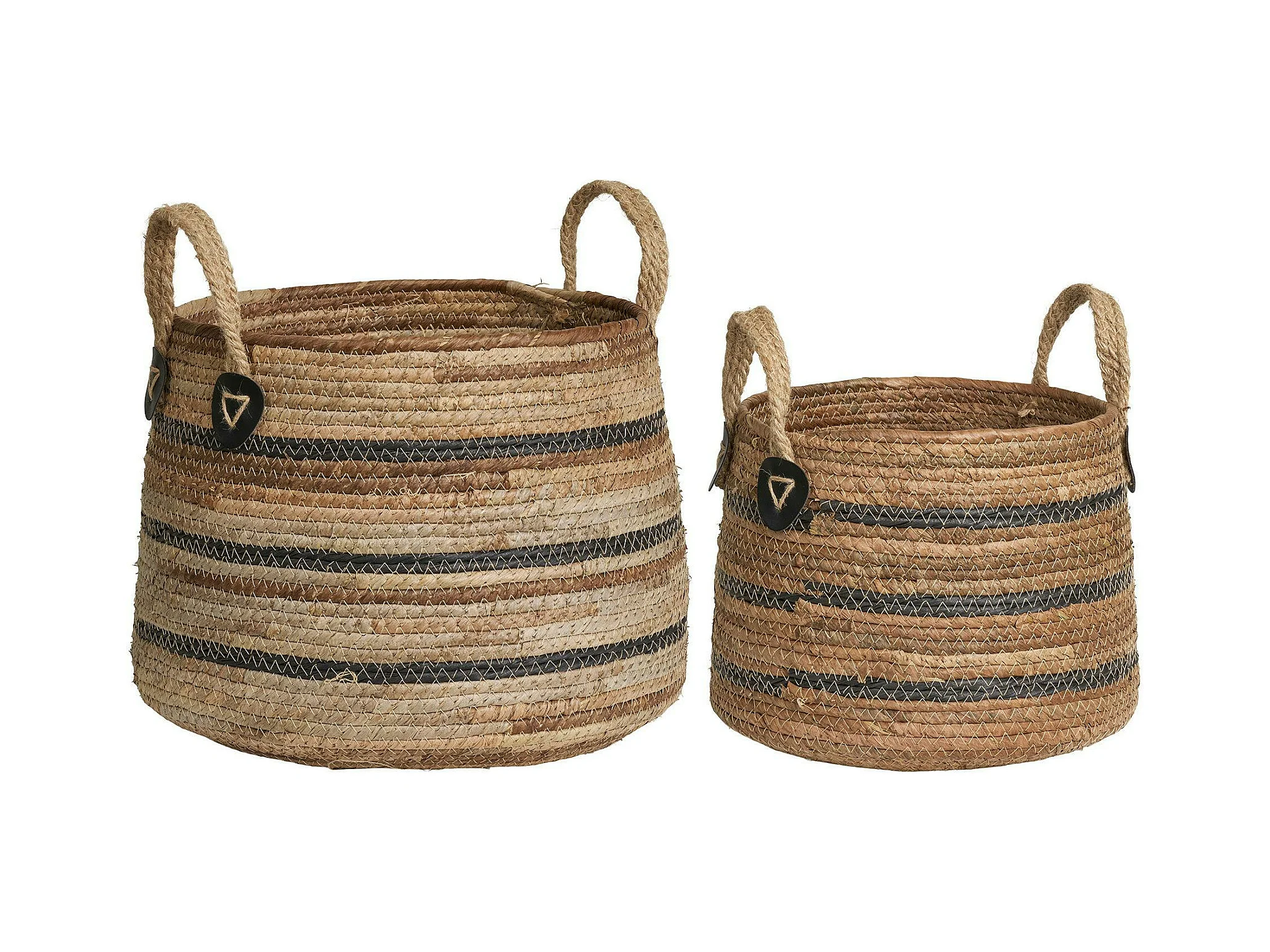 Panier cache-pot en feuille de bananier, tons noir et naturel (lot de 2)