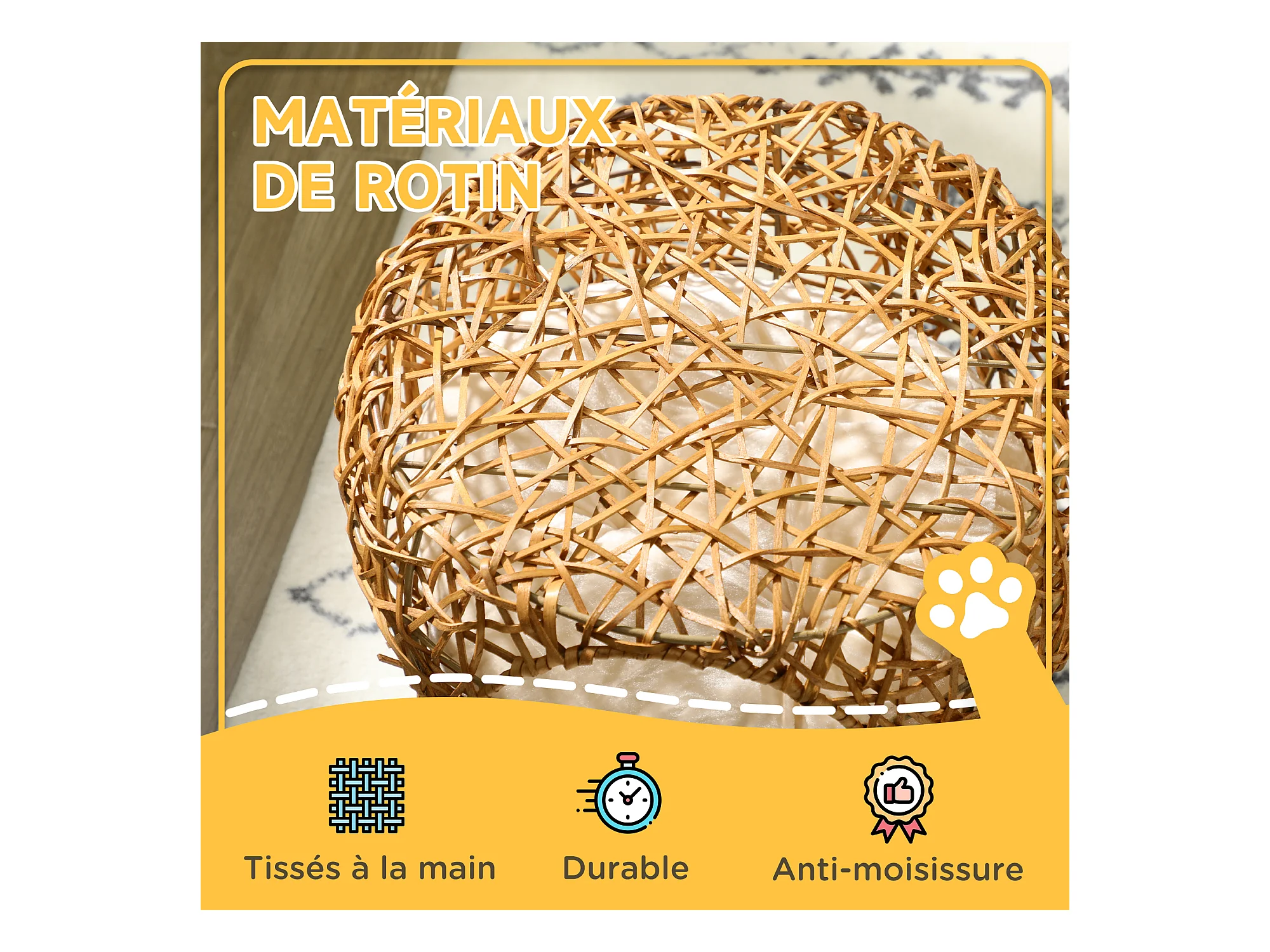 Panier chat lit chat cosy grand confort dim. Ø 40 x 32H cm coussin moelleux inclus polyester beige rotin