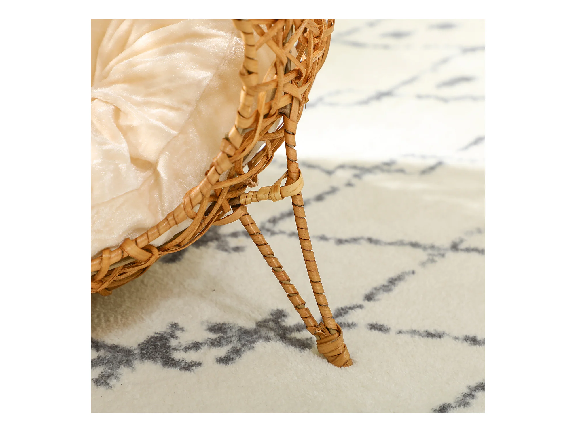 Lit panier igloo à deux niveaux en osier naturel avec deux coussins