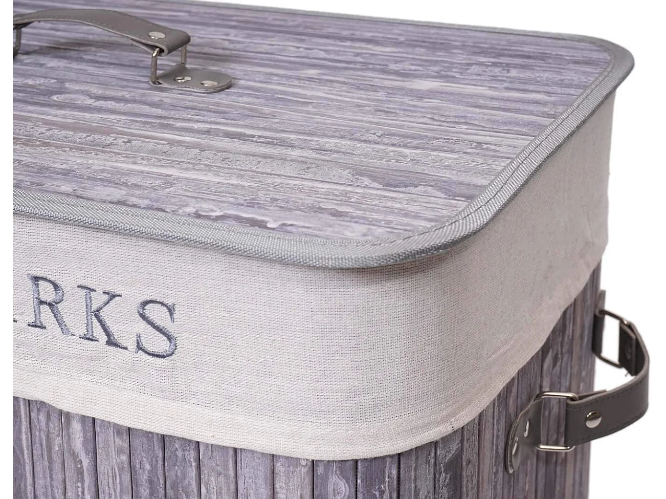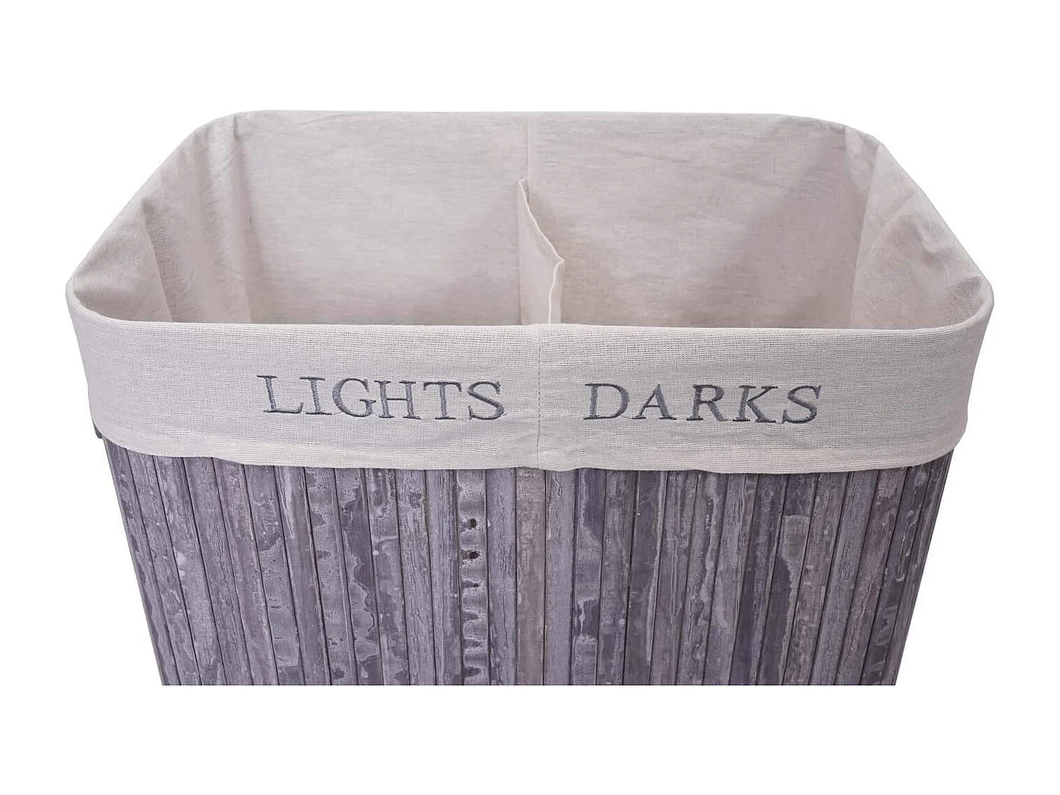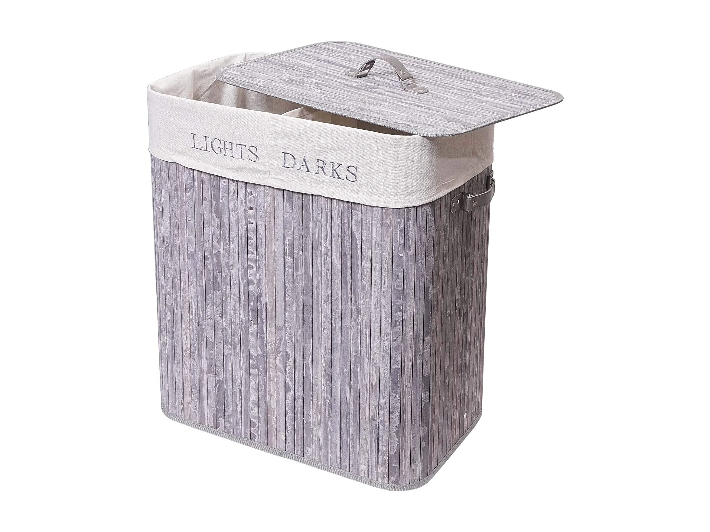 Panier à linge 100L avec 2 compartiments, bambou, gris (52x32x63 cm)