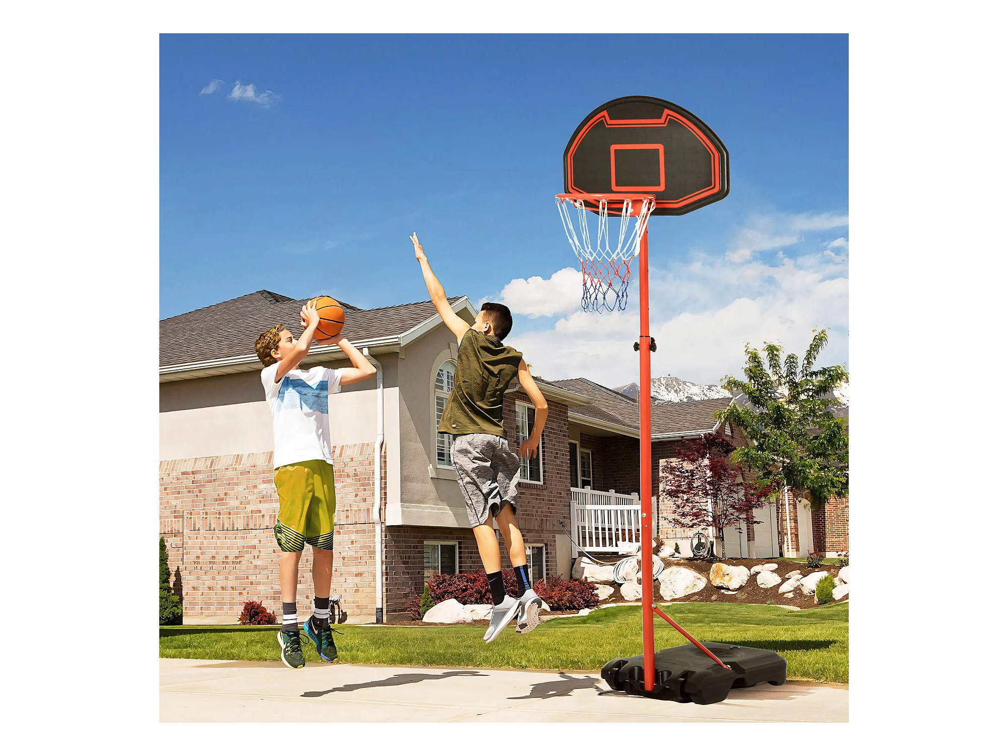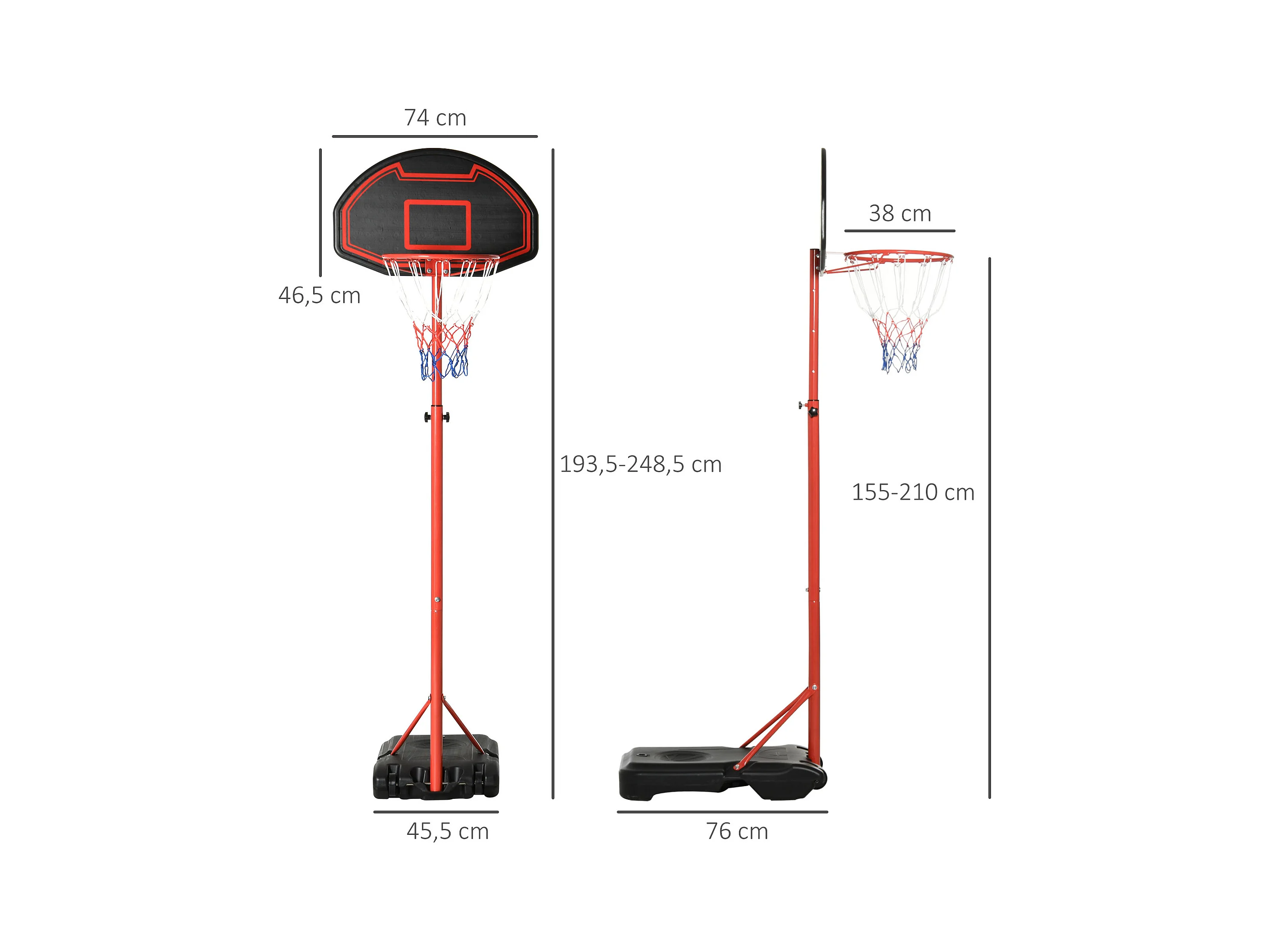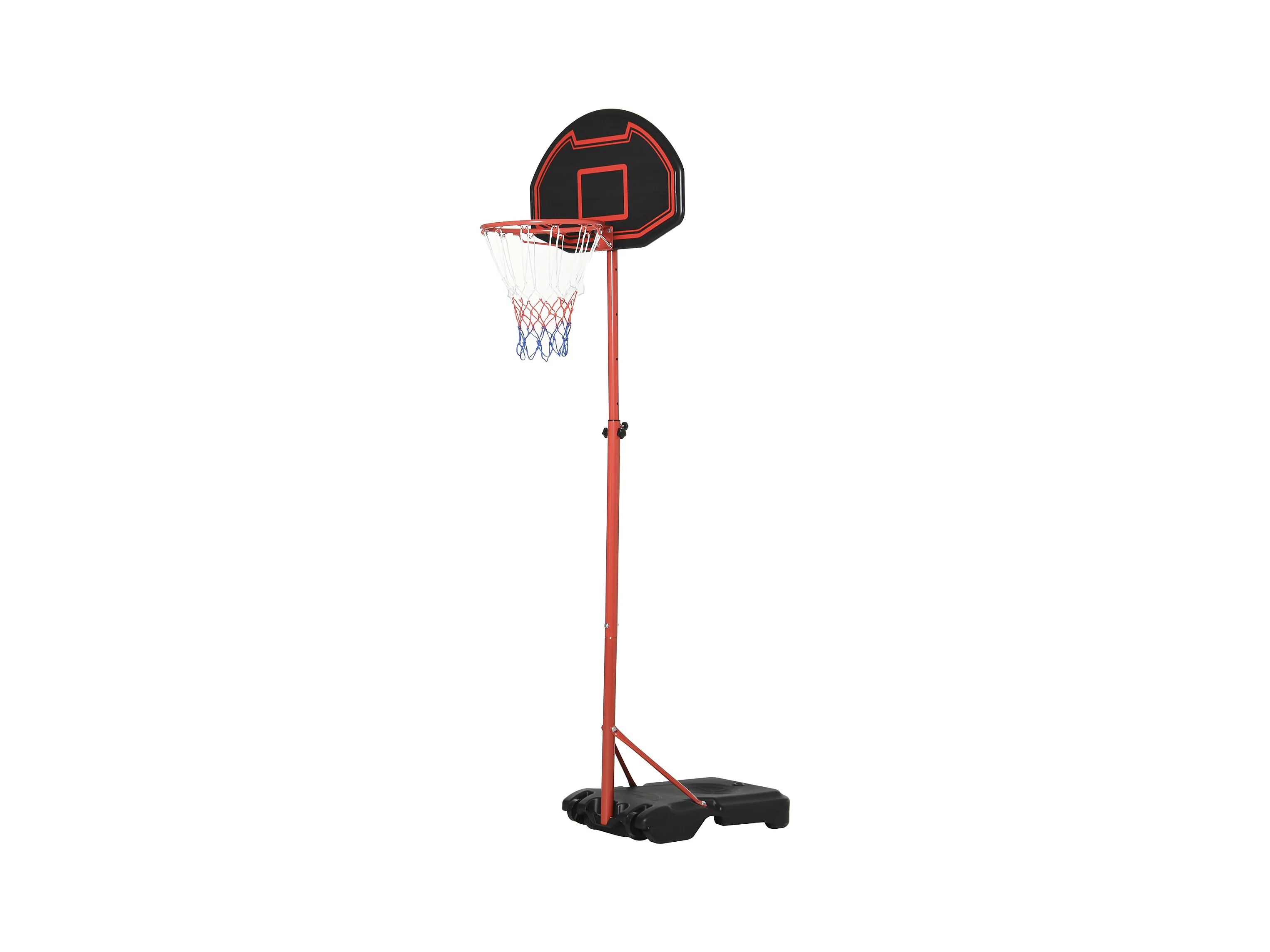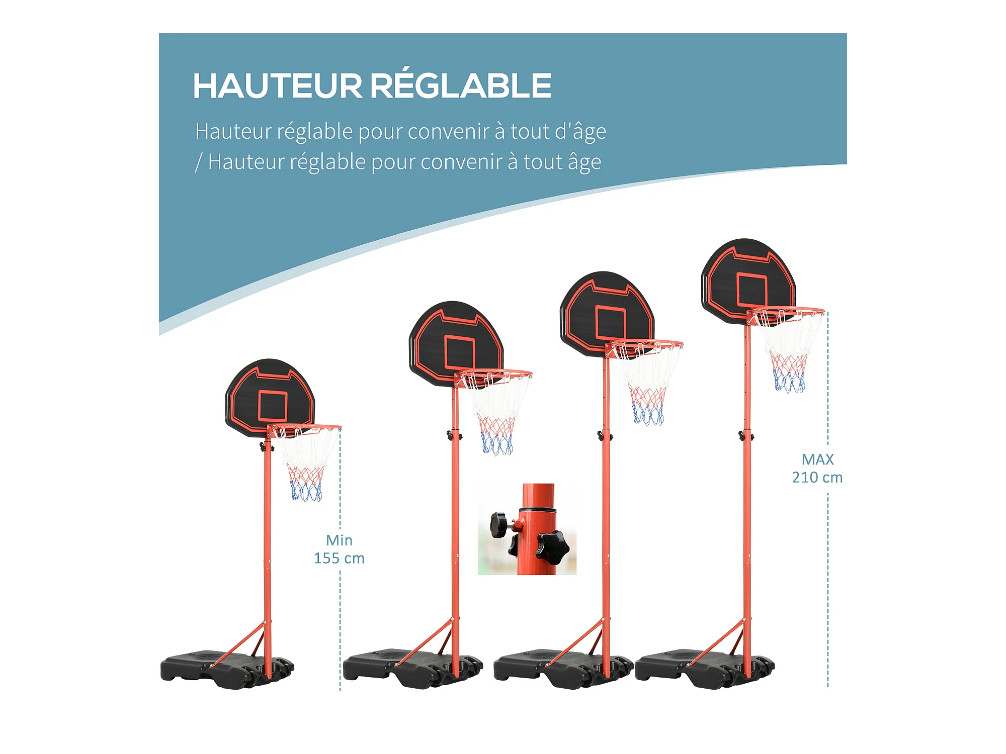 Panier de Basket-Ball sur pied avec poteau panneau, base de lestage sur roulettes hauteur réglable 1,55 - 2,1 m rouge noir