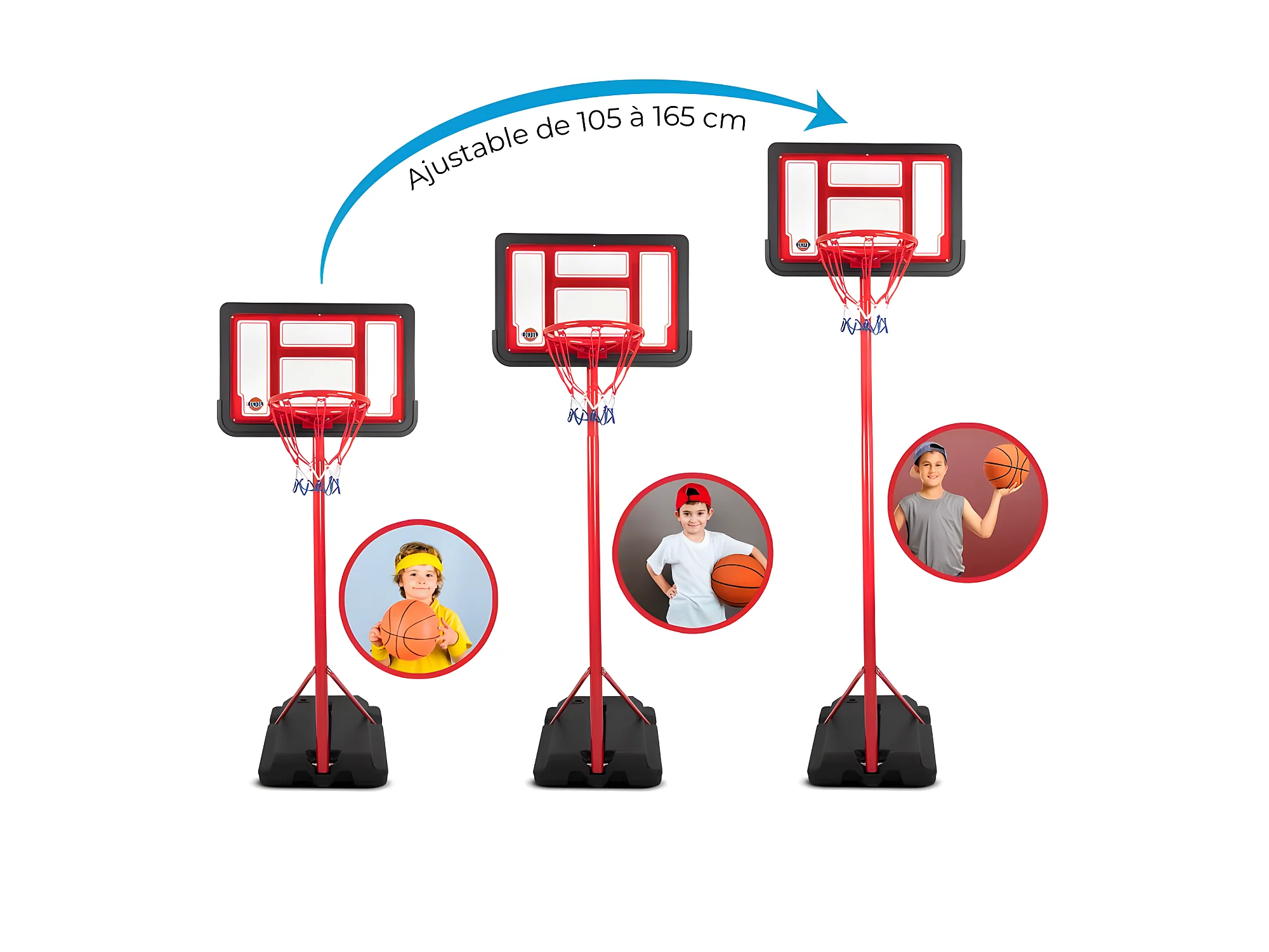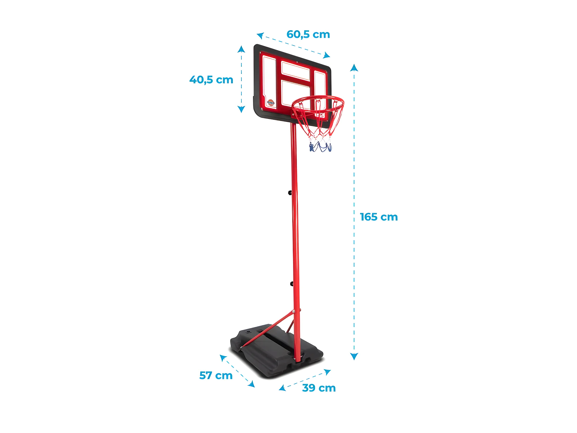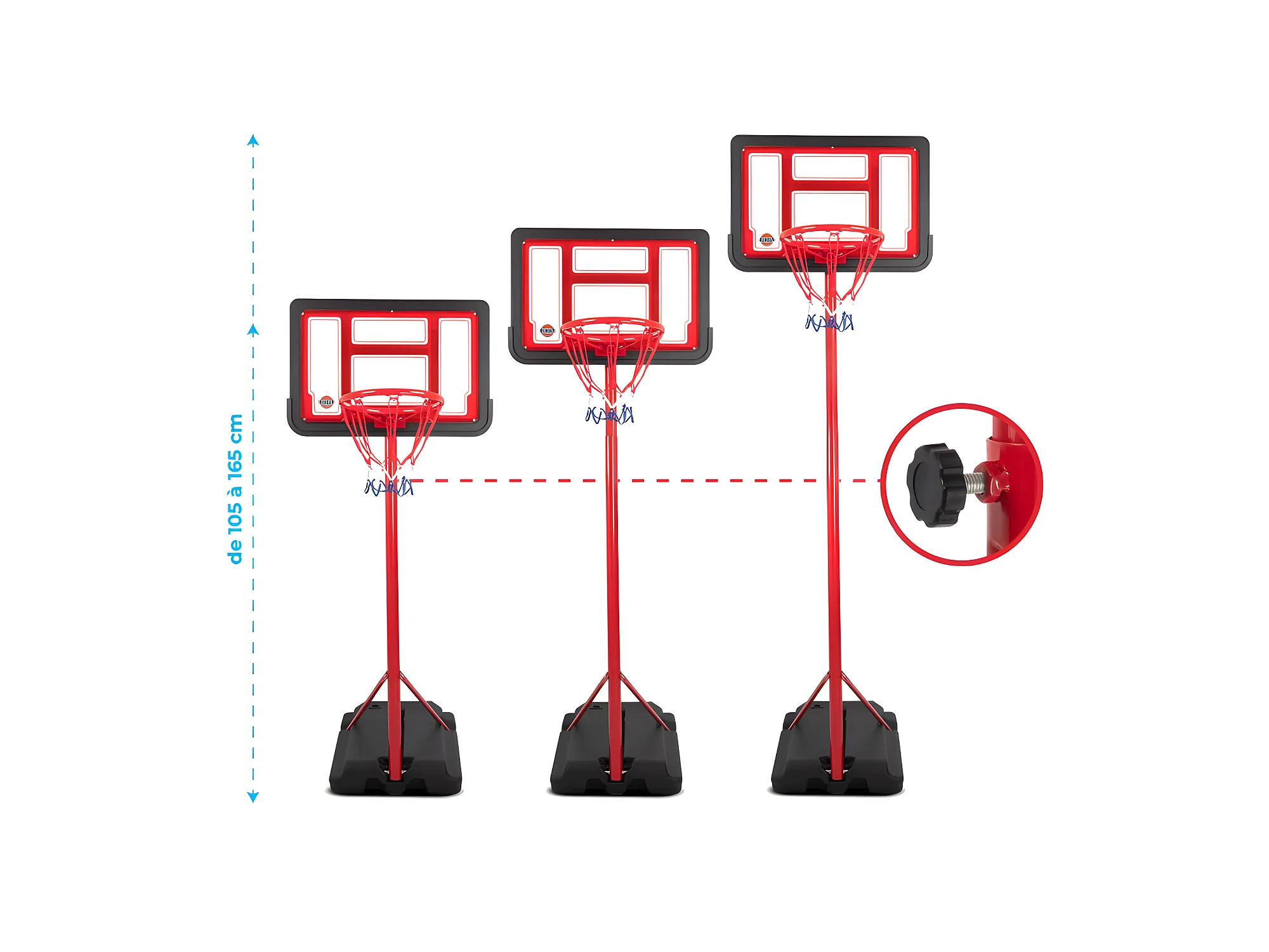 Panier de basket sur Pied Evolutif DENVER hauteur réglable de 1.05m à 1.65m Ballon et Pompe inclus