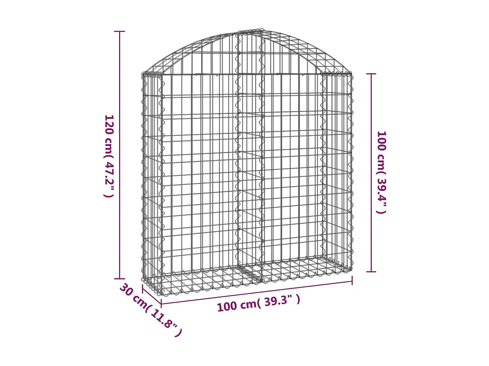 Panier de gabions arqué 100x30x100-120 Fer galvanisé