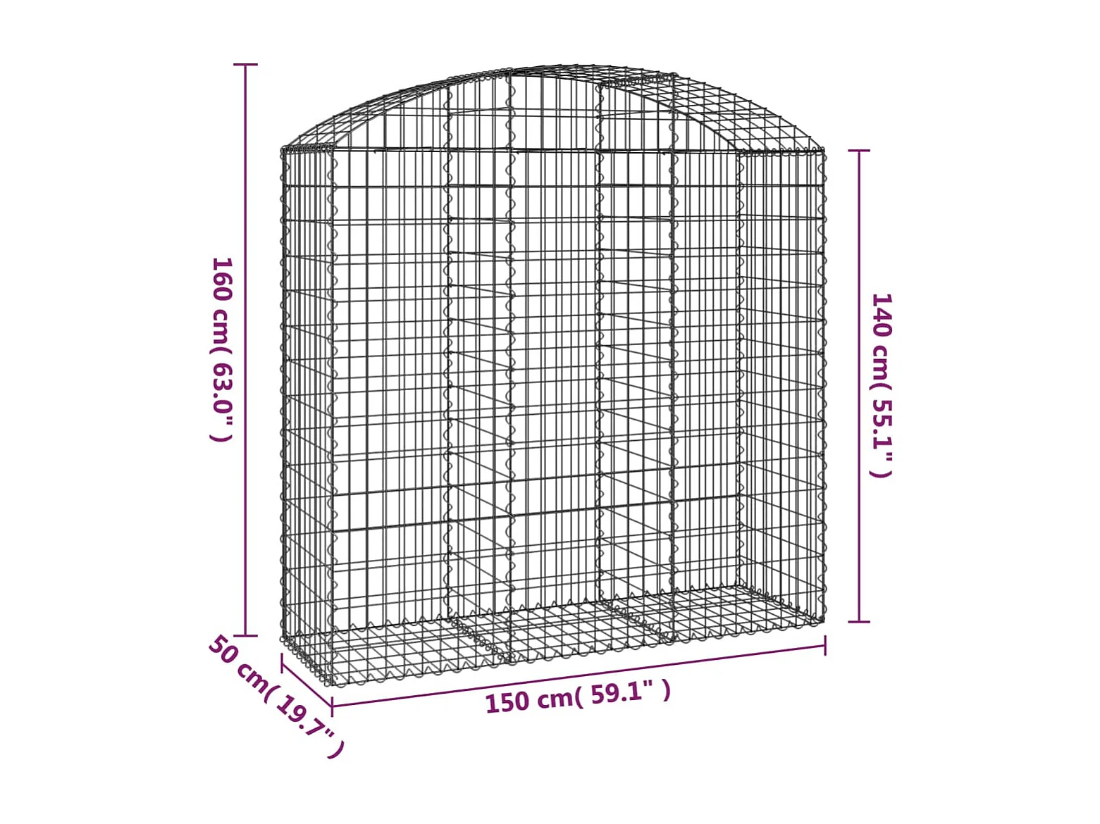 Panier de gabions arqué 150x50x140-160 Fer galvanisé