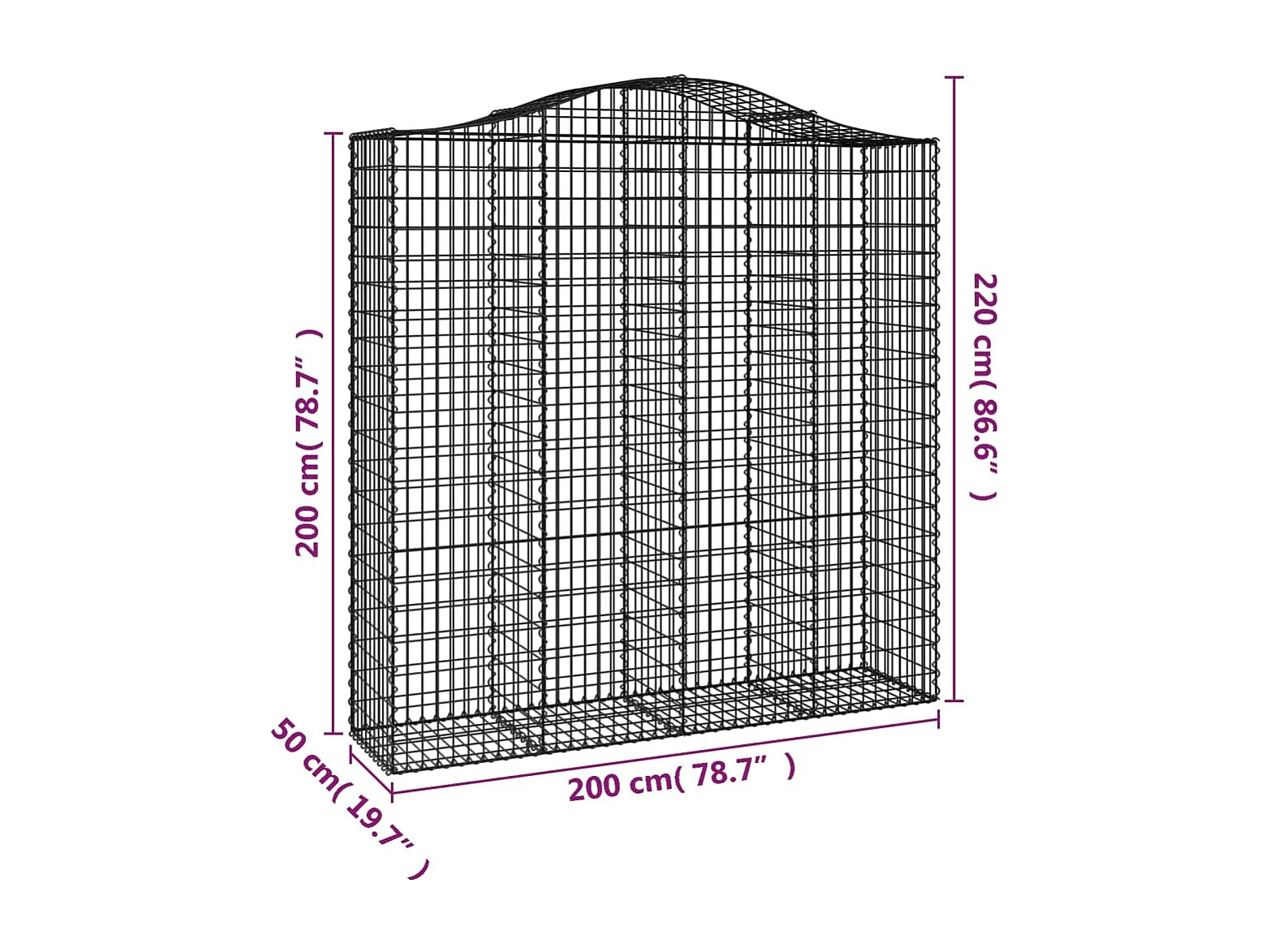 Panier de gabions arqué 200x50x200-220 Fer galvanisé