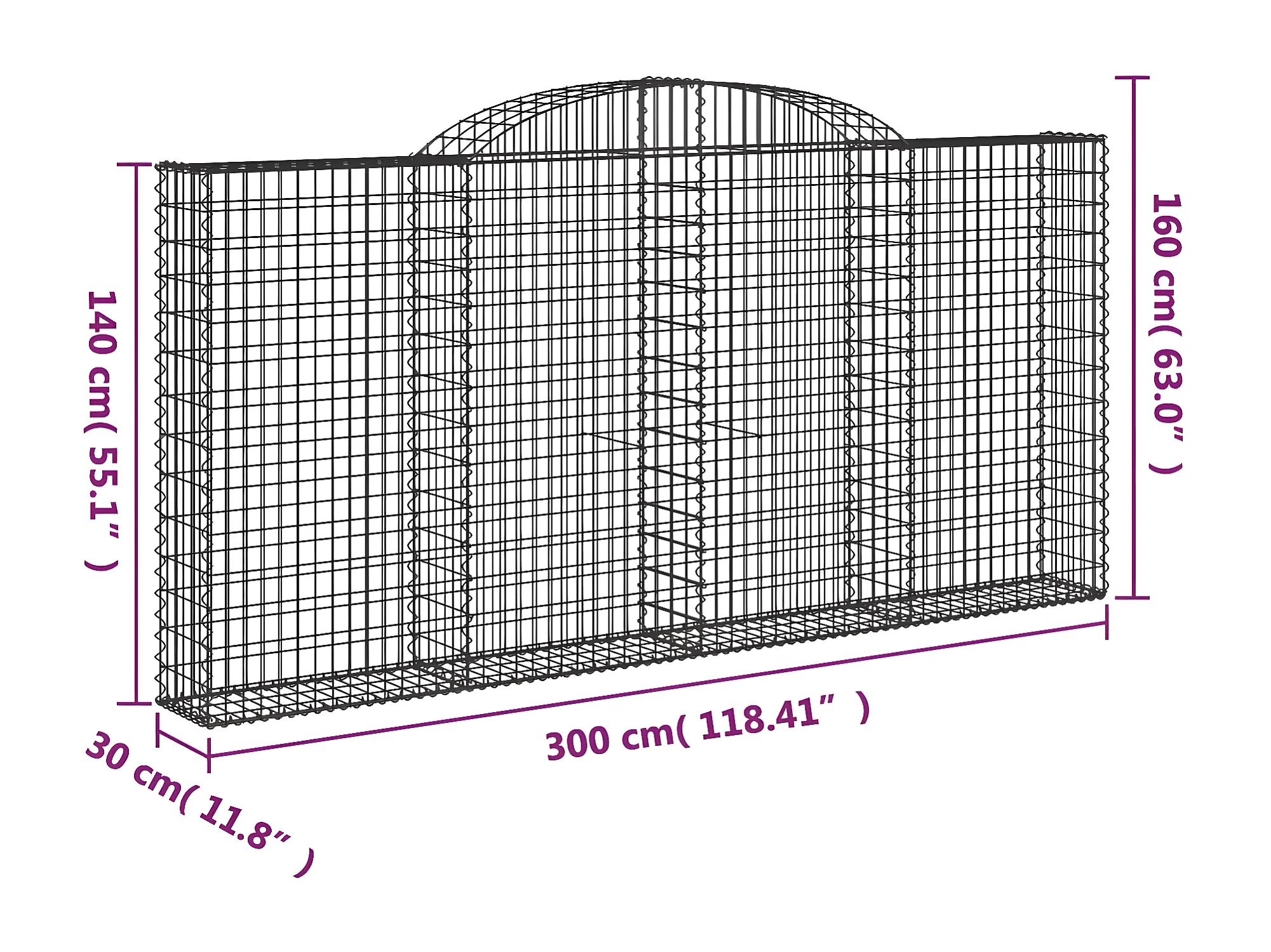 Panier de gabions arqué 300x30x140/160 cm Fer galvanisé